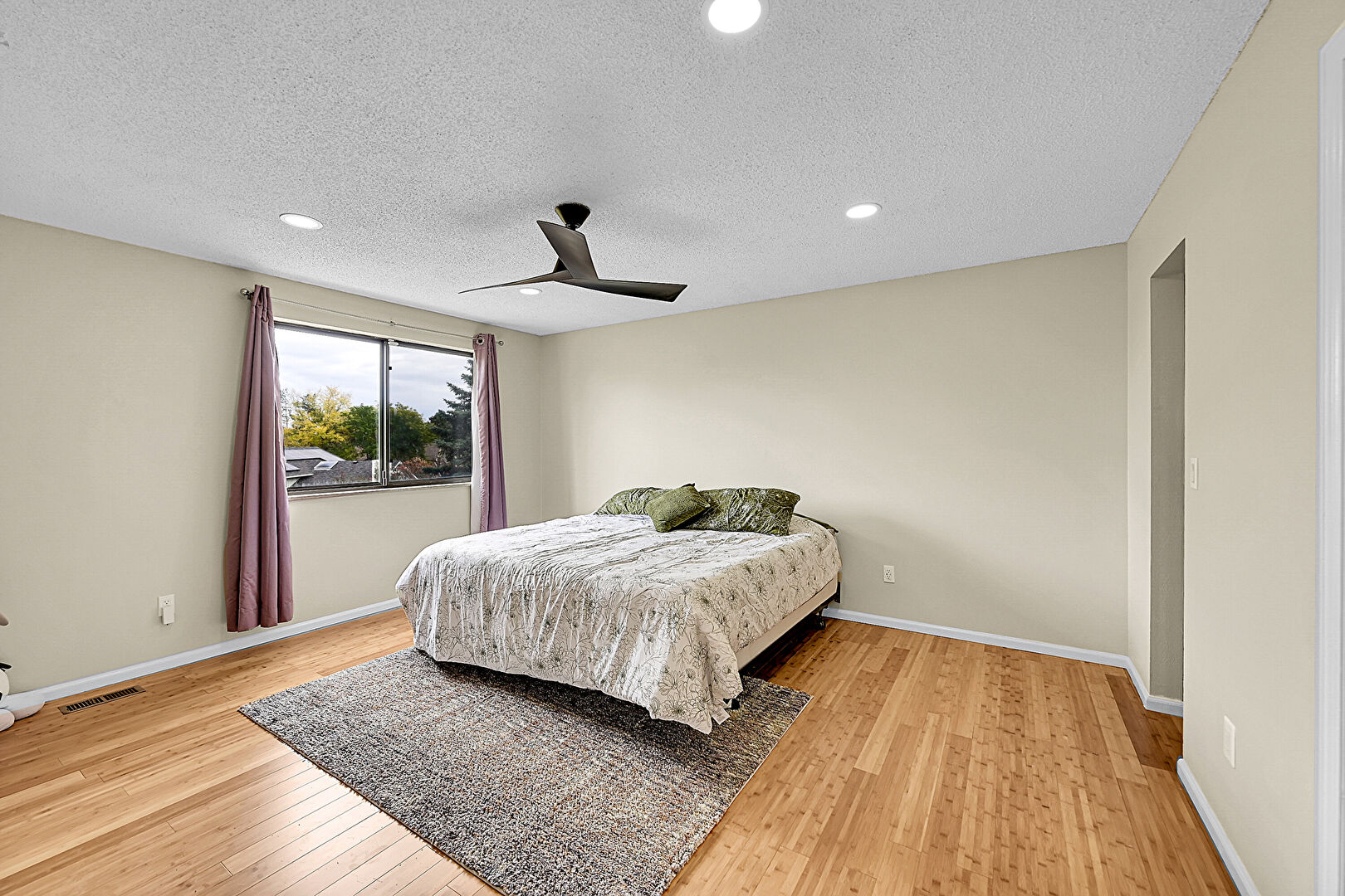 Baseboards Wall, Ceiling Fan, Closet, Drywall, Ensuite Bathroom, Natural Light, Notable Chandelier, Nursery, Office Area, Recessed Lighting, Textured Ceiling, Vent, Walk In Closet, Wood Finish Floor, Textured Ceiling, Textured Wall, Vent