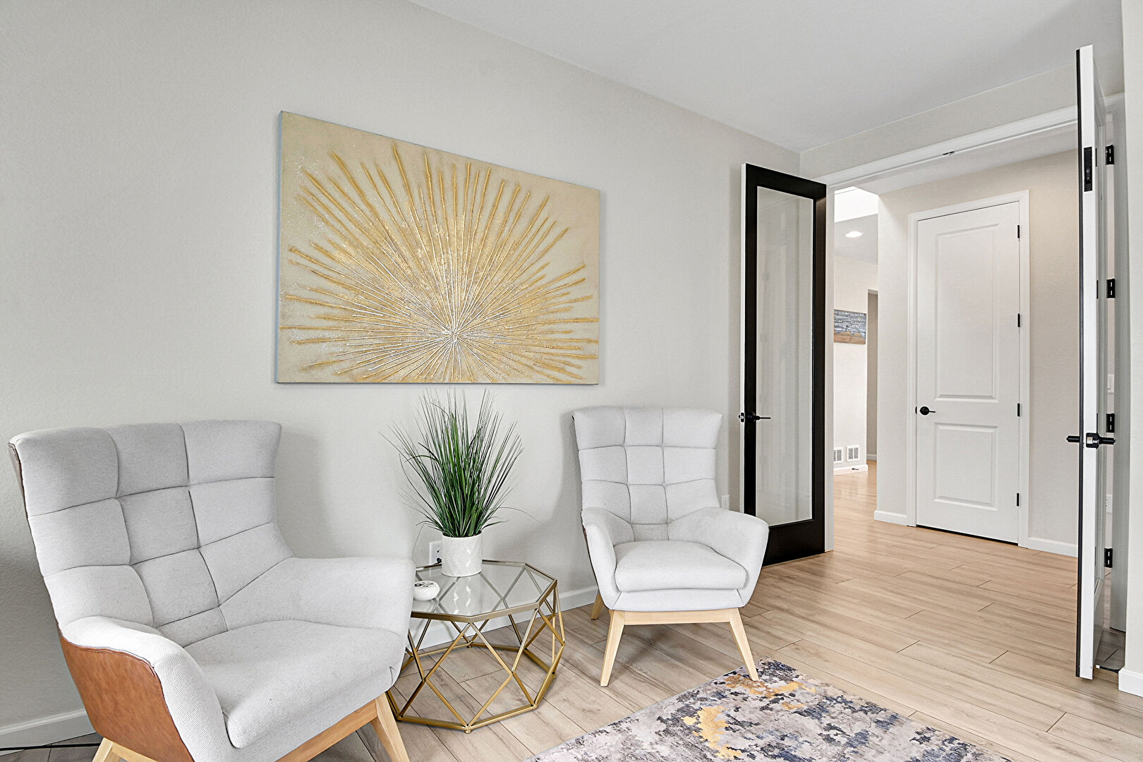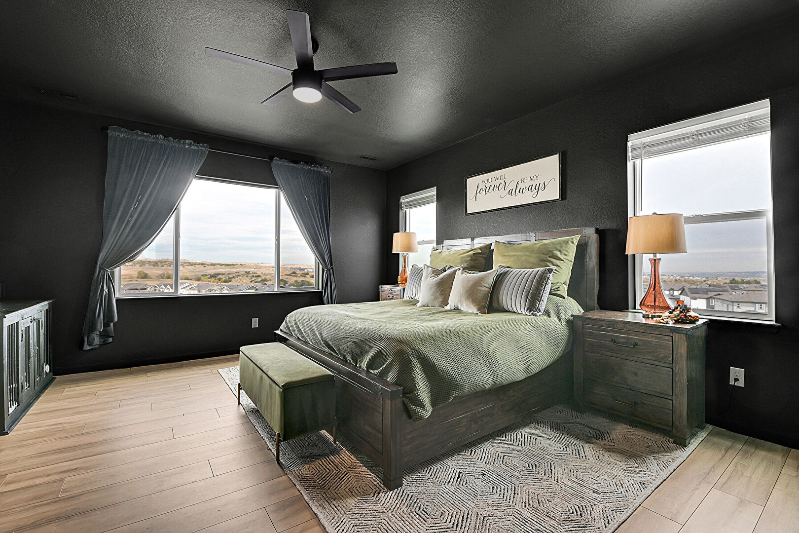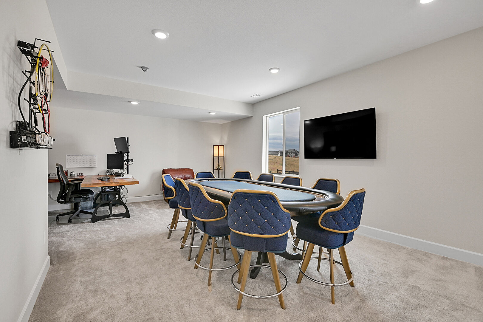 Baseboards Wall, Carpet, Ceiling Fan, Drywall, Natural Light, Office Area, Wood Finish Floor, Drywall, Office Area