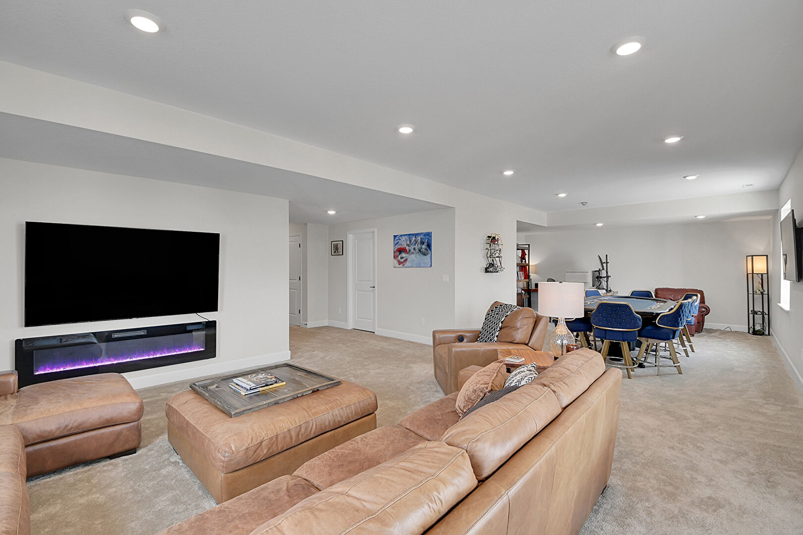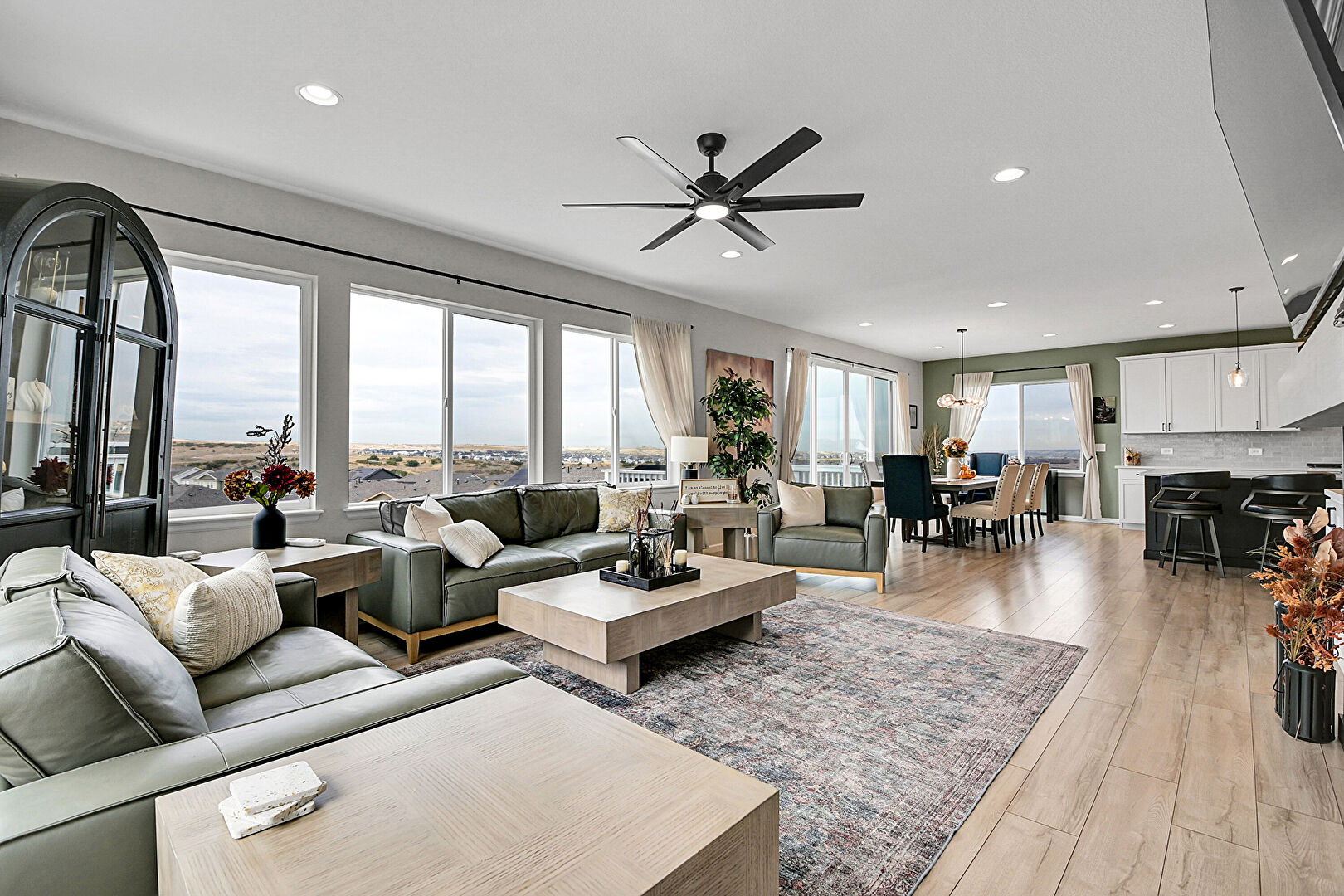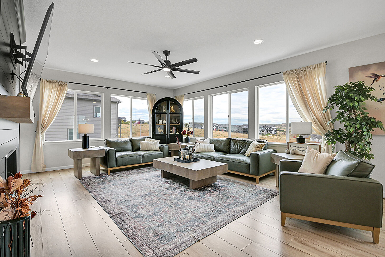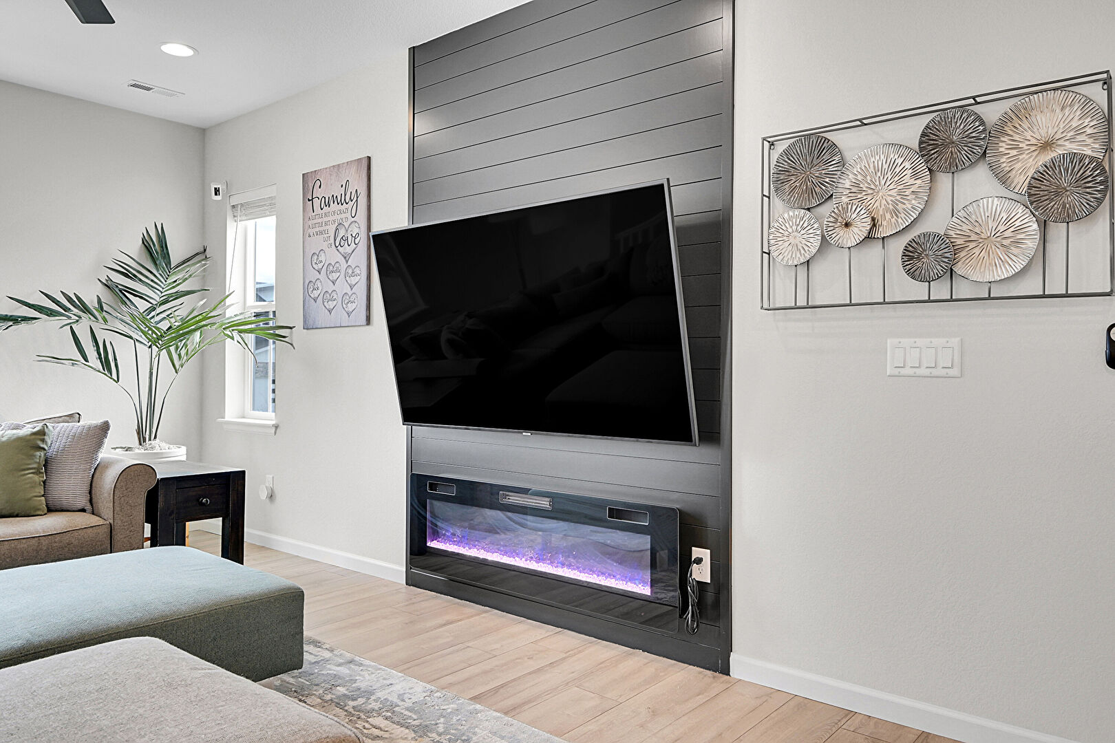 Baseboards Wall, Ceiling Fan, Drywall, Fireplace, Natural Light, Recessed Lighting, Vent, Wood Finish Floor, Ceiling Fan, Drywall, Fireplace, Recessed Lighting, Vent, Wood Finish Floor