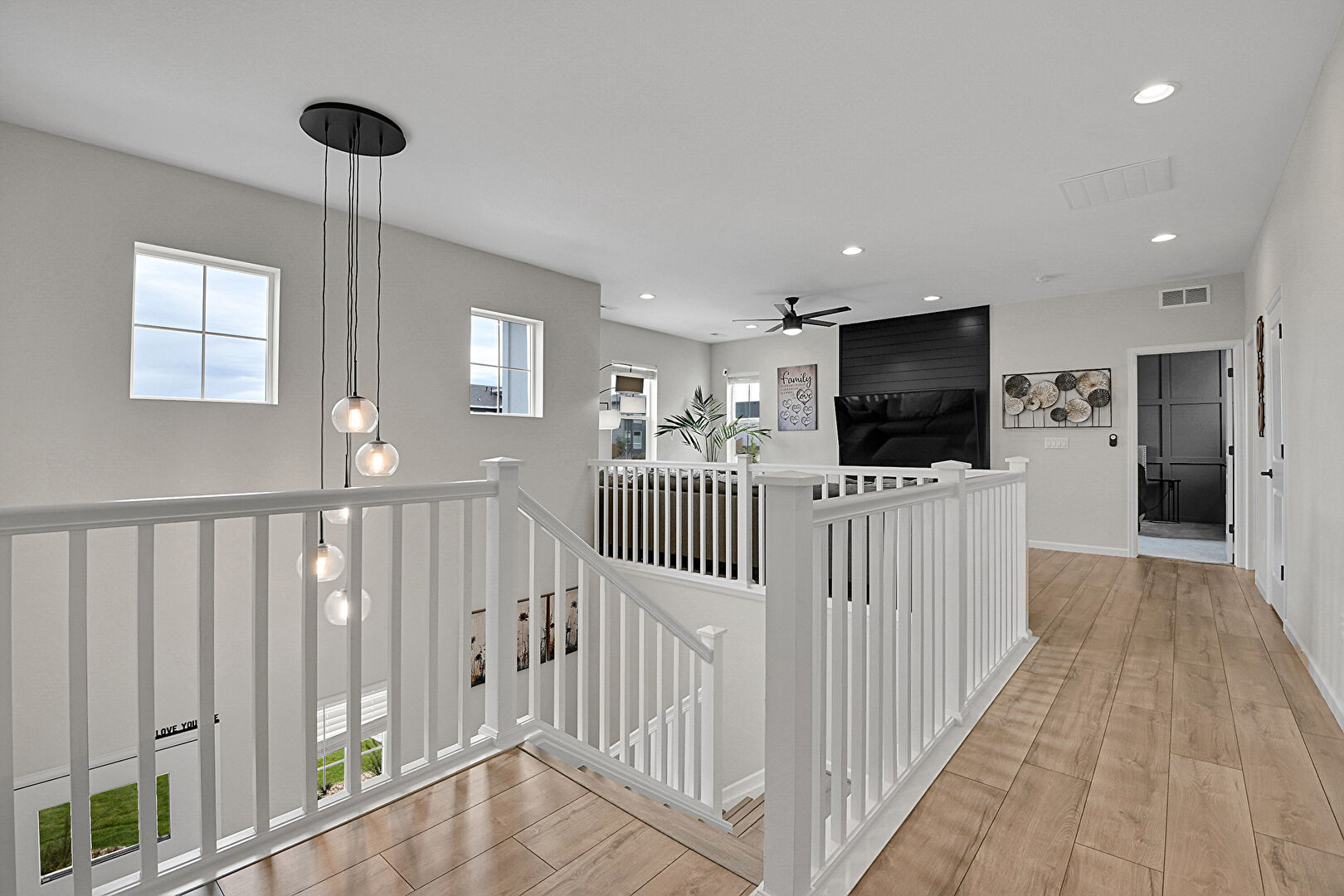 Baseboards Wall, Drywall, Loft, Natural Light, Recessed Lighting, Upstairs Landing, Vent, Wood Finish Floor, Drywall, Upstairs Landing, Wood Finish Floor
