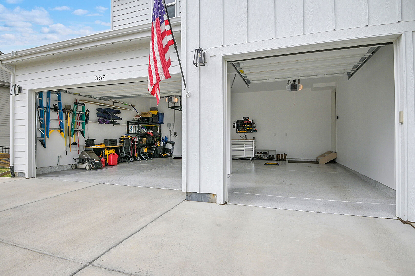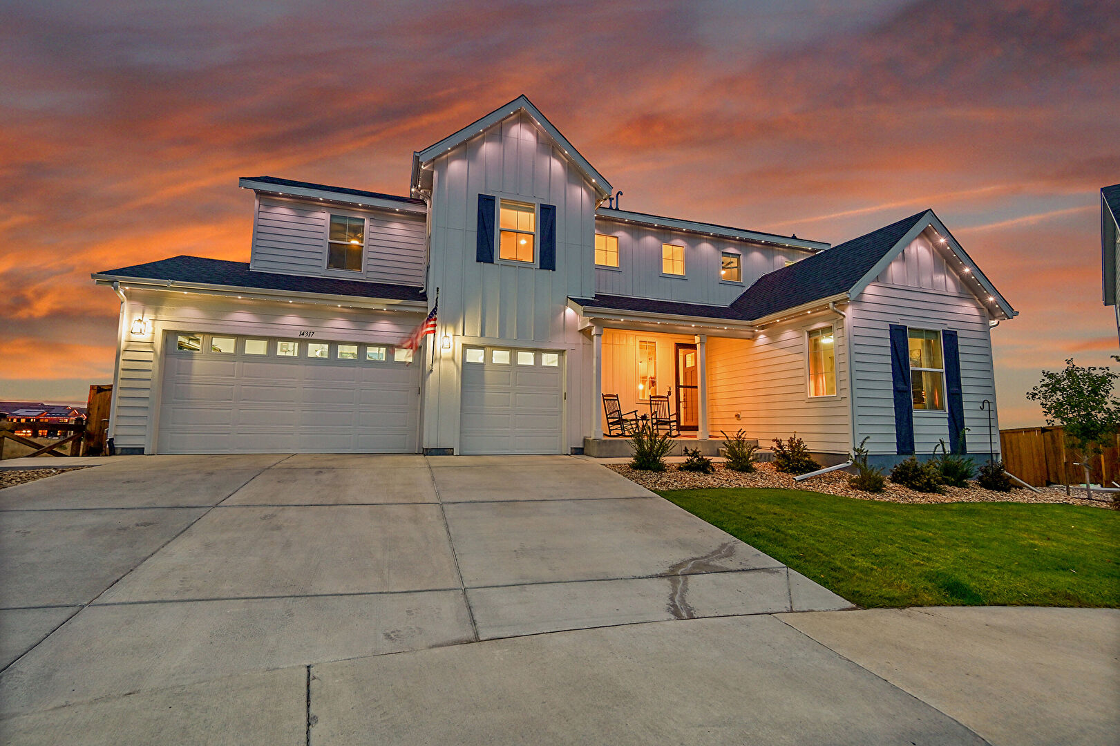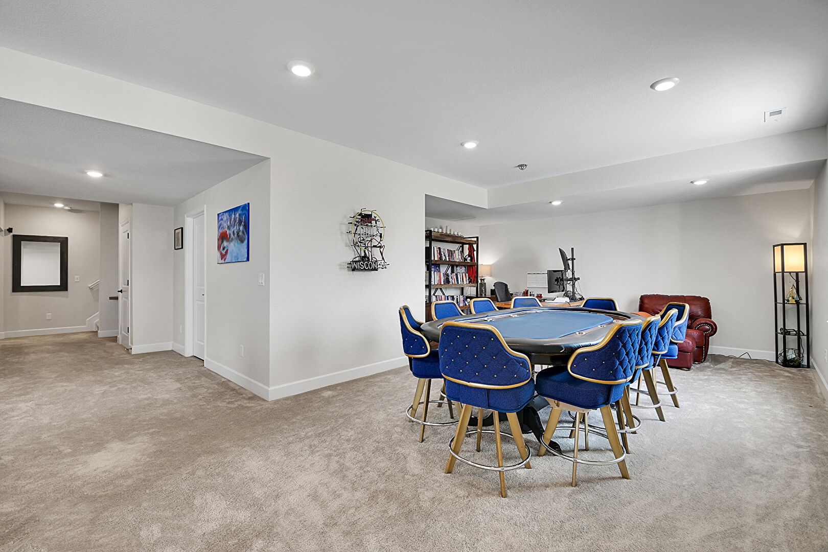 Baseboards Wall, Built In Garage, Carpet, Downspout, Driveway, Drywall, Fence, Fireplace, Horizontal Siding, Lawn, Natural Light, Office Area, Porch, Recessed Lighting, Residential View, Shingle Roof, Vent, Vertical Siding, Baseboards Wall, Board Batten Siding, Fireplace, Natural Light, Recessed Lighting