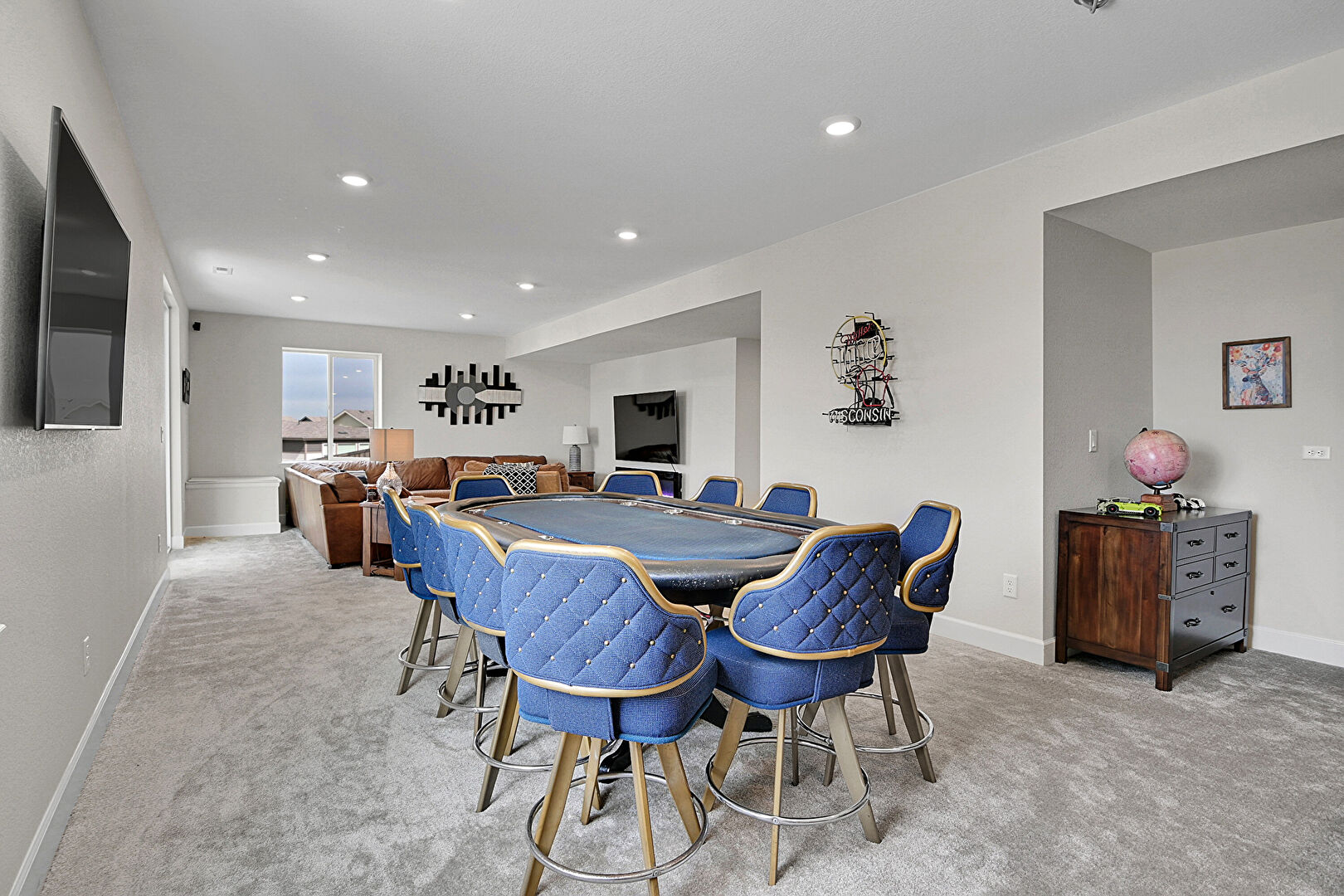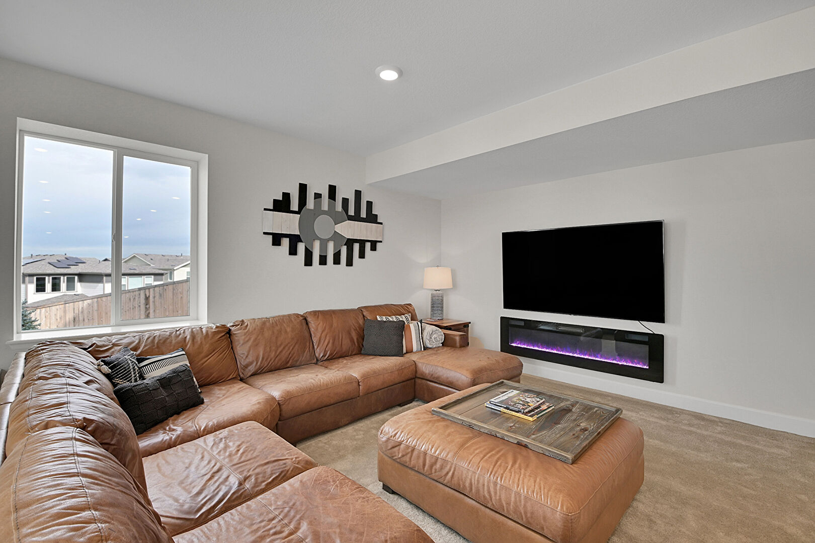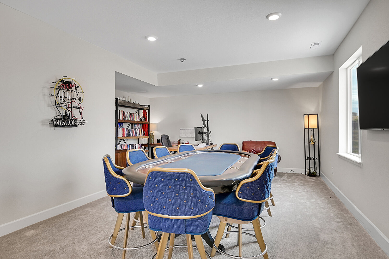Baseboards Wall, Built In Garage, Carpet, Downspout, Driveway, Drywall, Fence, Fireplace, Horizontal Siding, Lawn, Natural Light, Office Area, Porch, Recessed Lighting, Residential View, Shingle Roof, Vent, Vertical Siding, Baseboards Wall, Board Batten Siding, Fireplace, Natural Light, Recessed Lighting