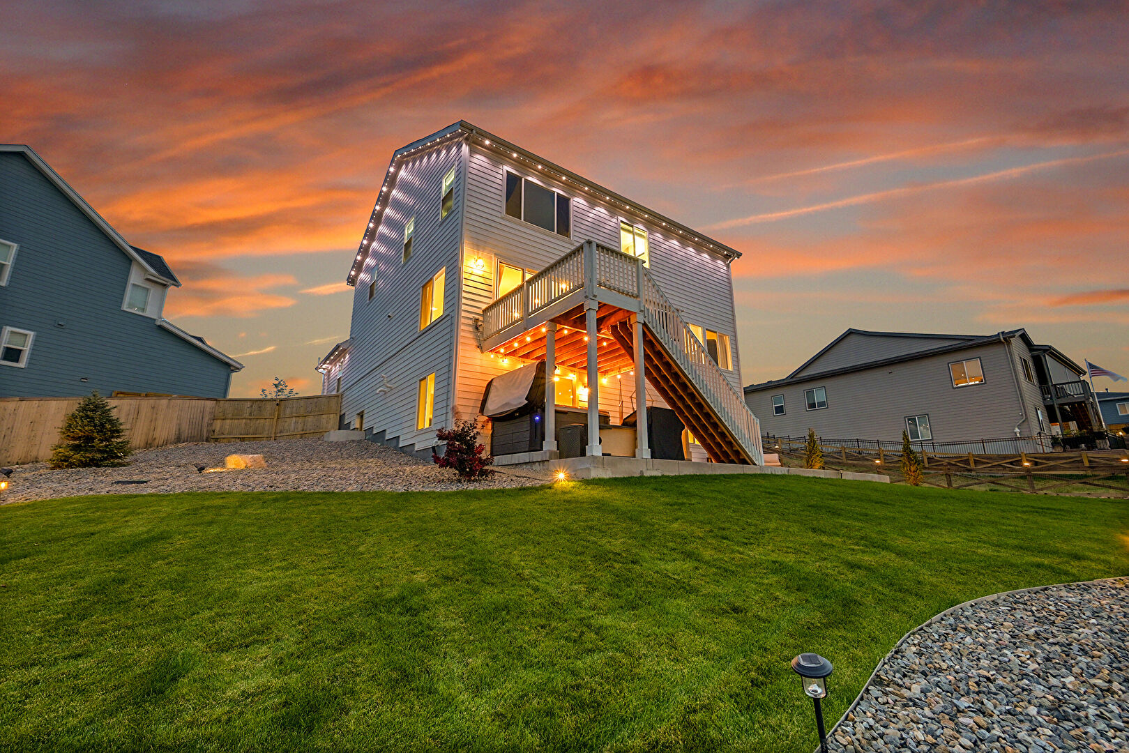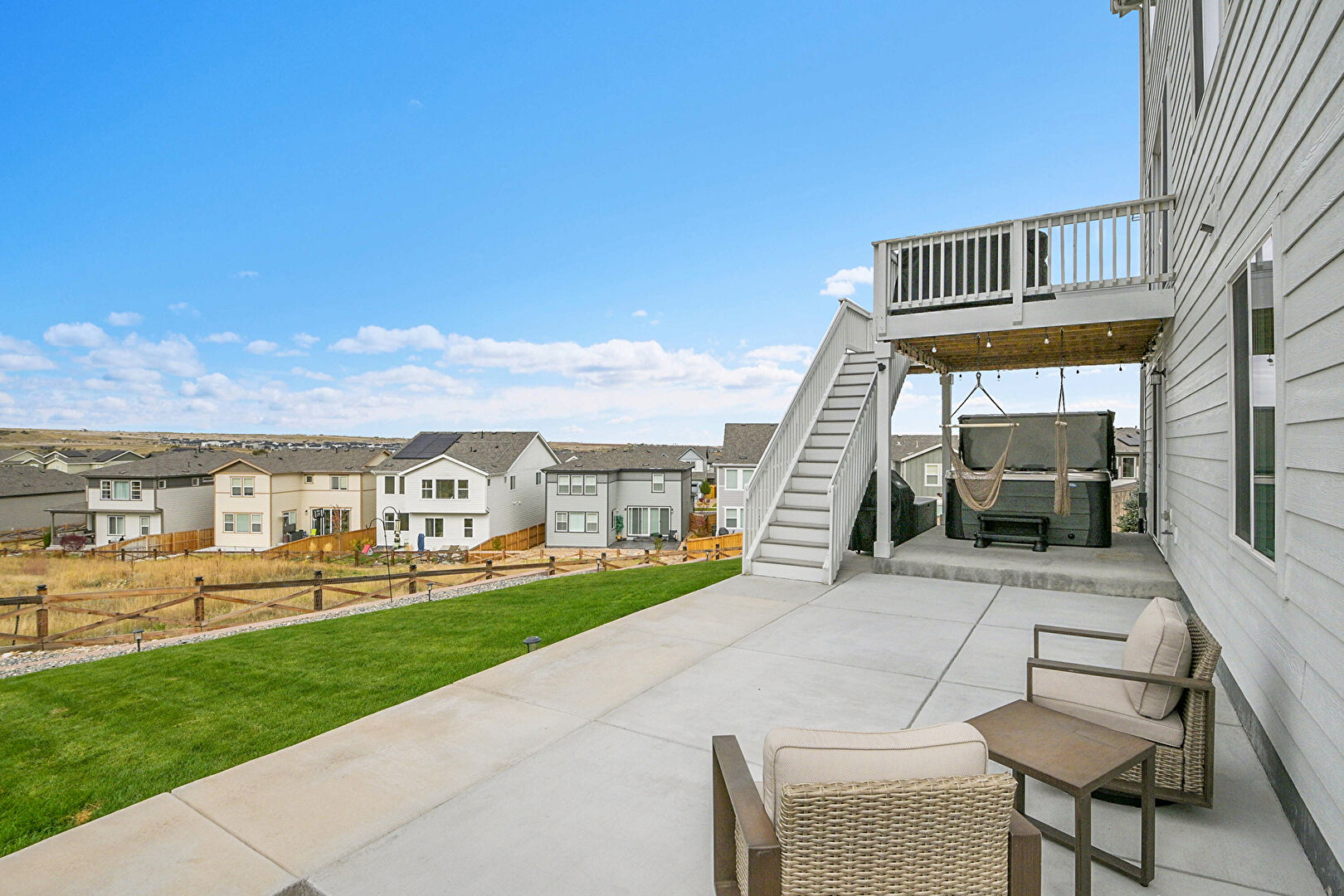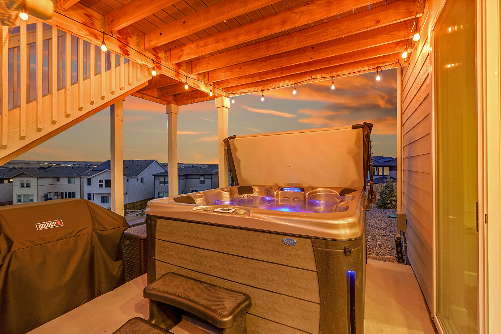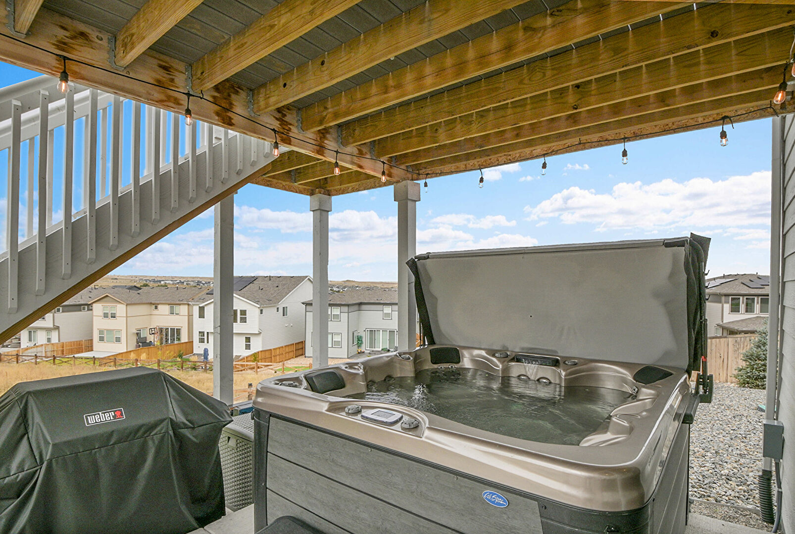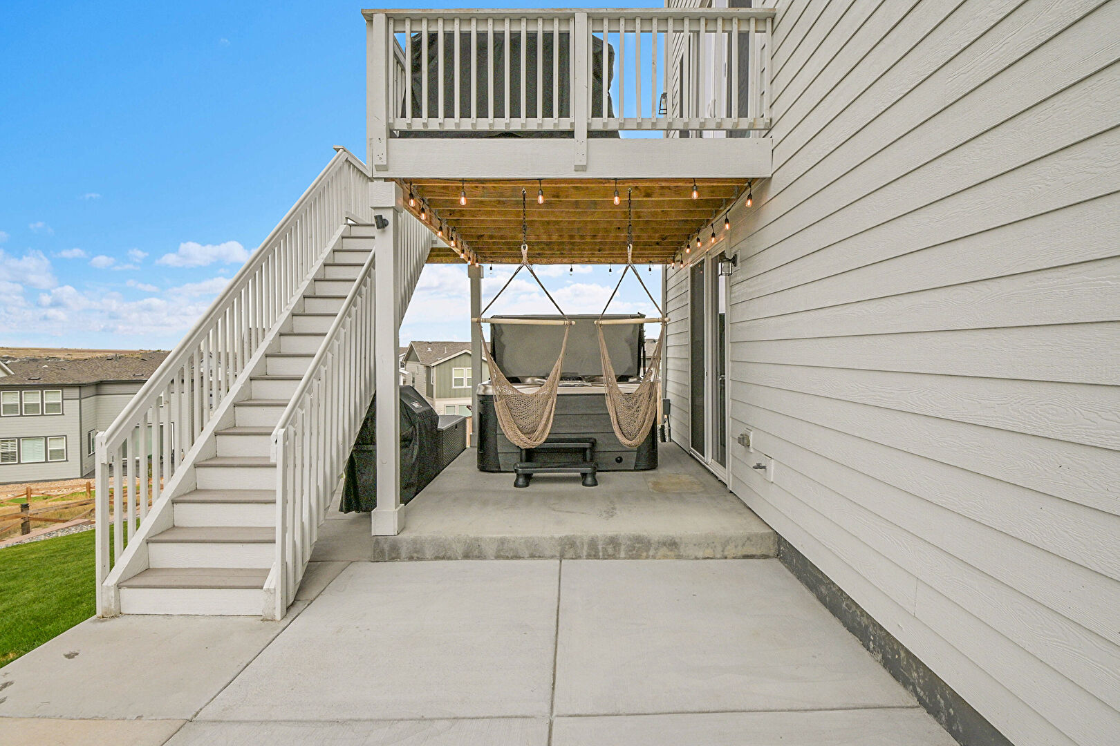 Fence, Grill, Hot Tub, Lawn, Patio, Residential View, Stairs, Deck, Patio