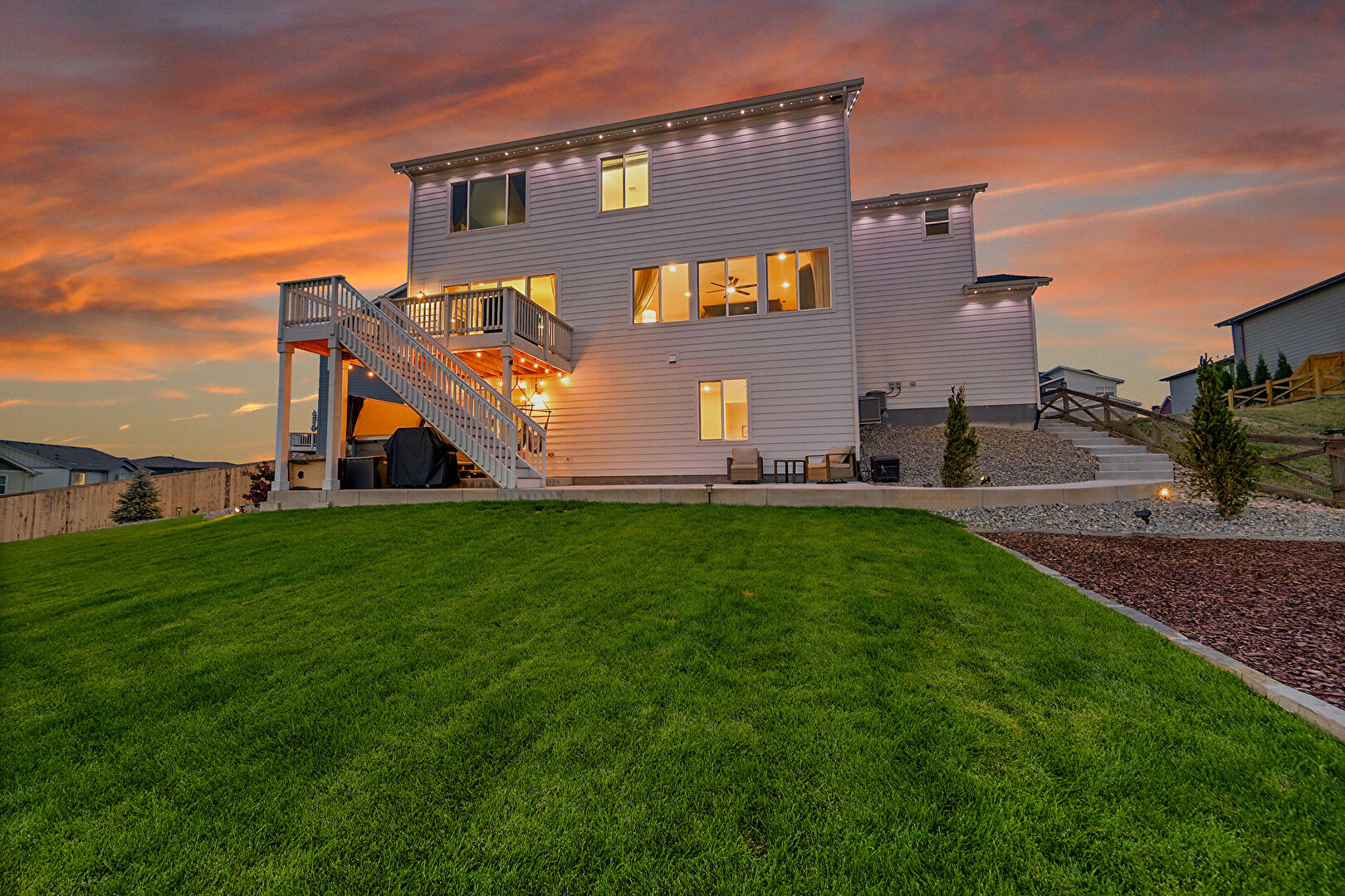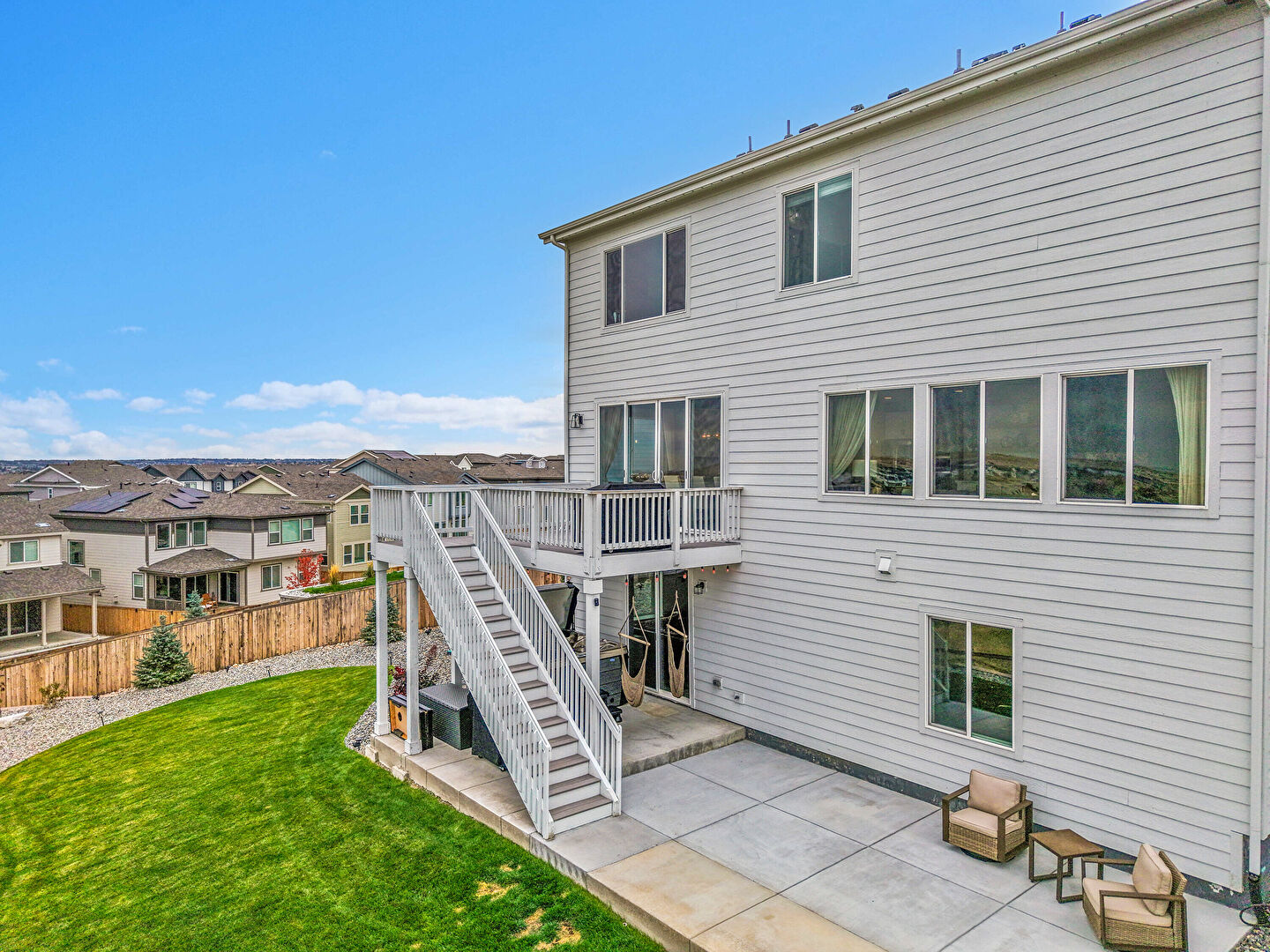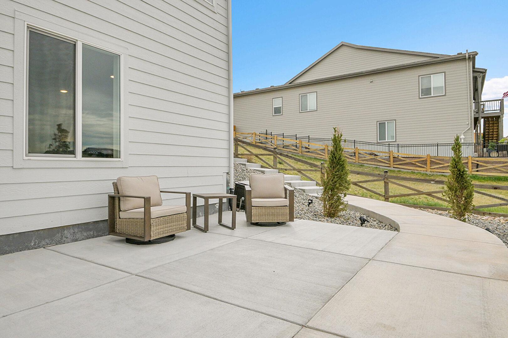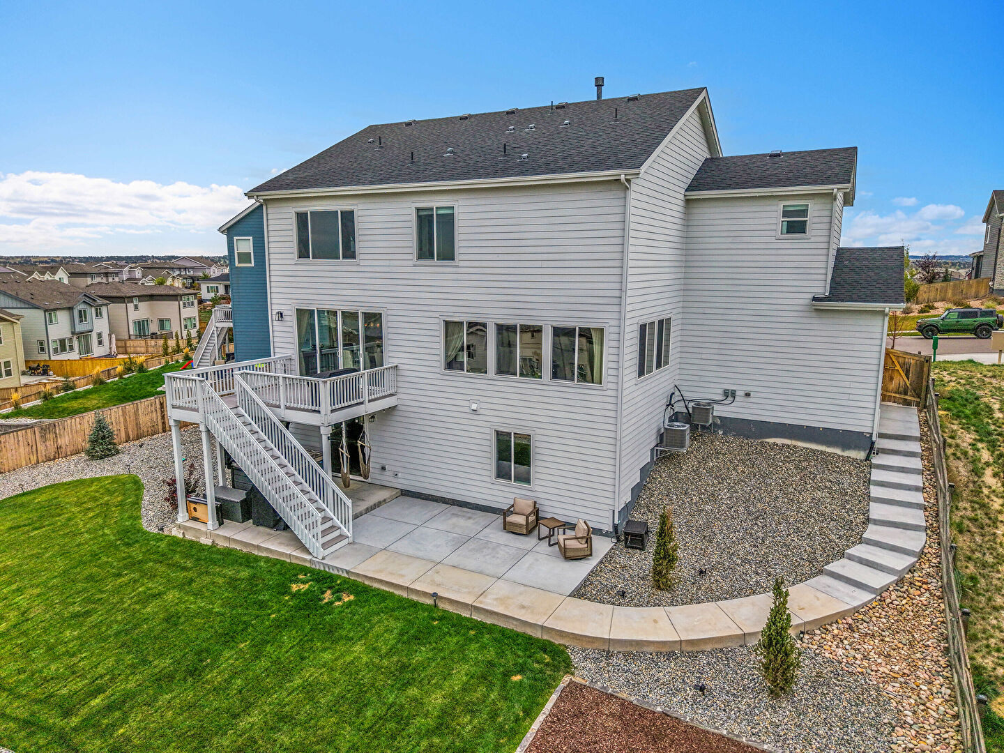 Basement Walk Out, Central Ac, Concrete Foundation, Deck, Downspout, Fence, Grill, Gutters, Horizontal Siding, Lawn, Patio, Residential View, Shingle Roof, Stairs, Concrete Foundation, Deck, Downspout, Fence, Lawn, Patio, Residential View, Shingle Roof