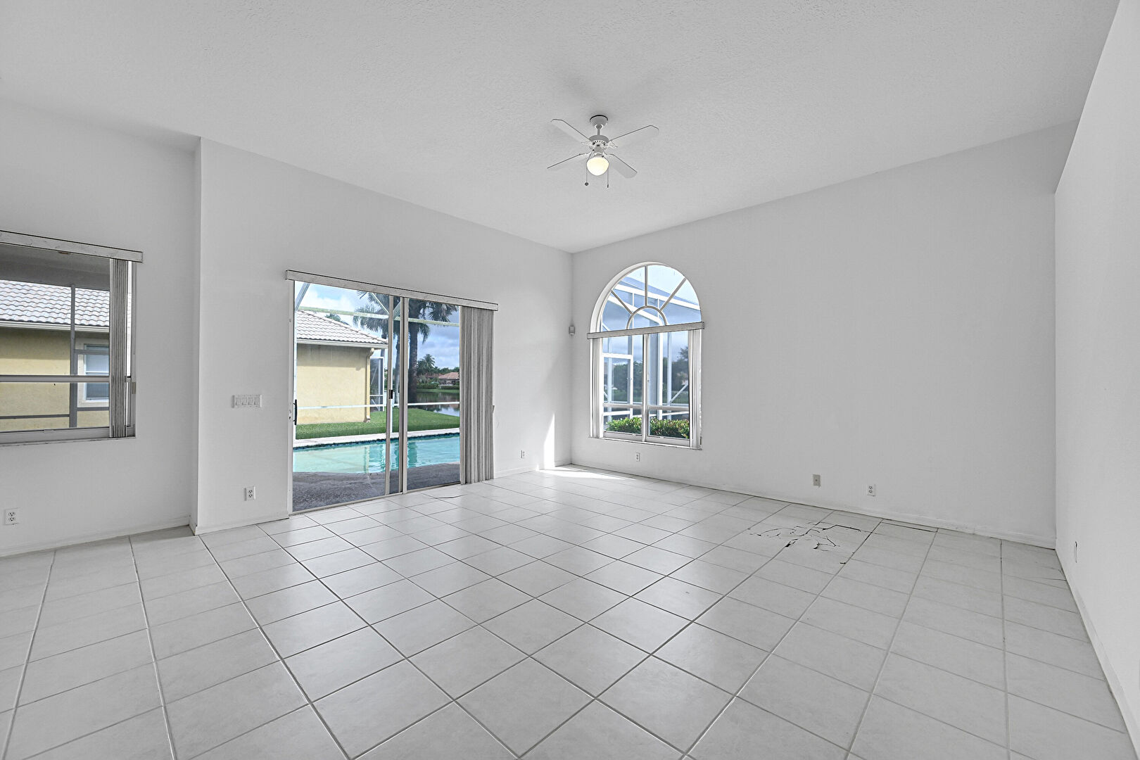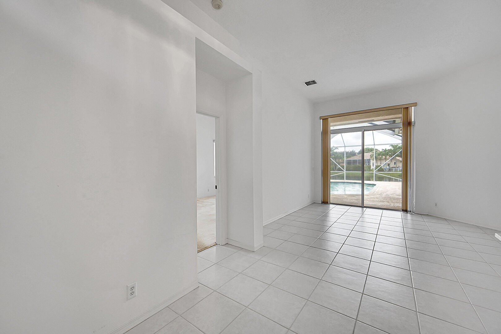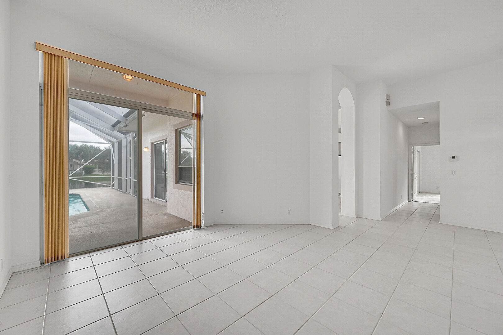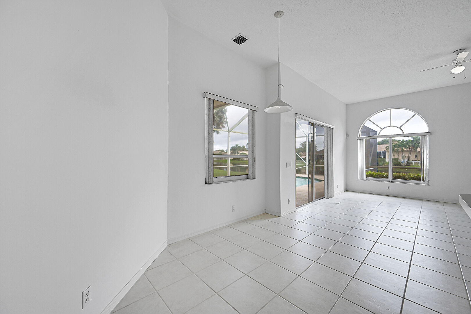 Arched Walkways,  Baseboards Wall,  Drywall,  Natural Light,  Sunroom,  Tile Floor,  Vent, Natural Light, Vent