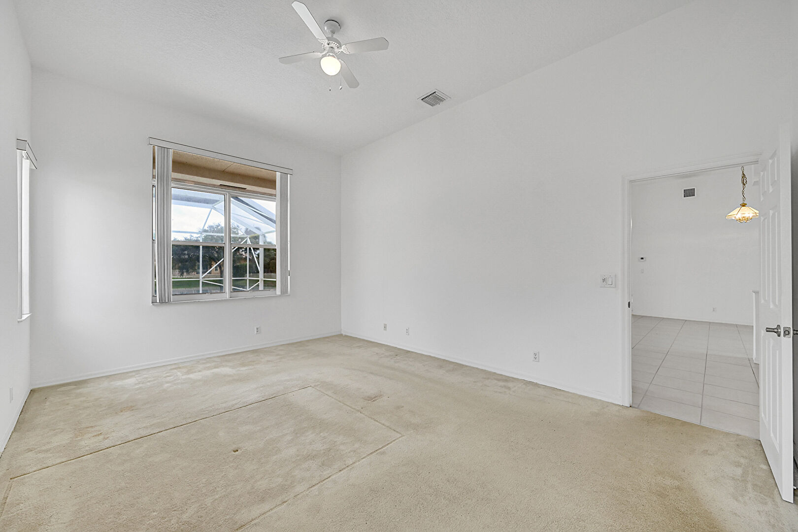 Ceiling Fan,  Drywall,  Natural Light,  Tile Floor,  Vent, Baseboards Wall