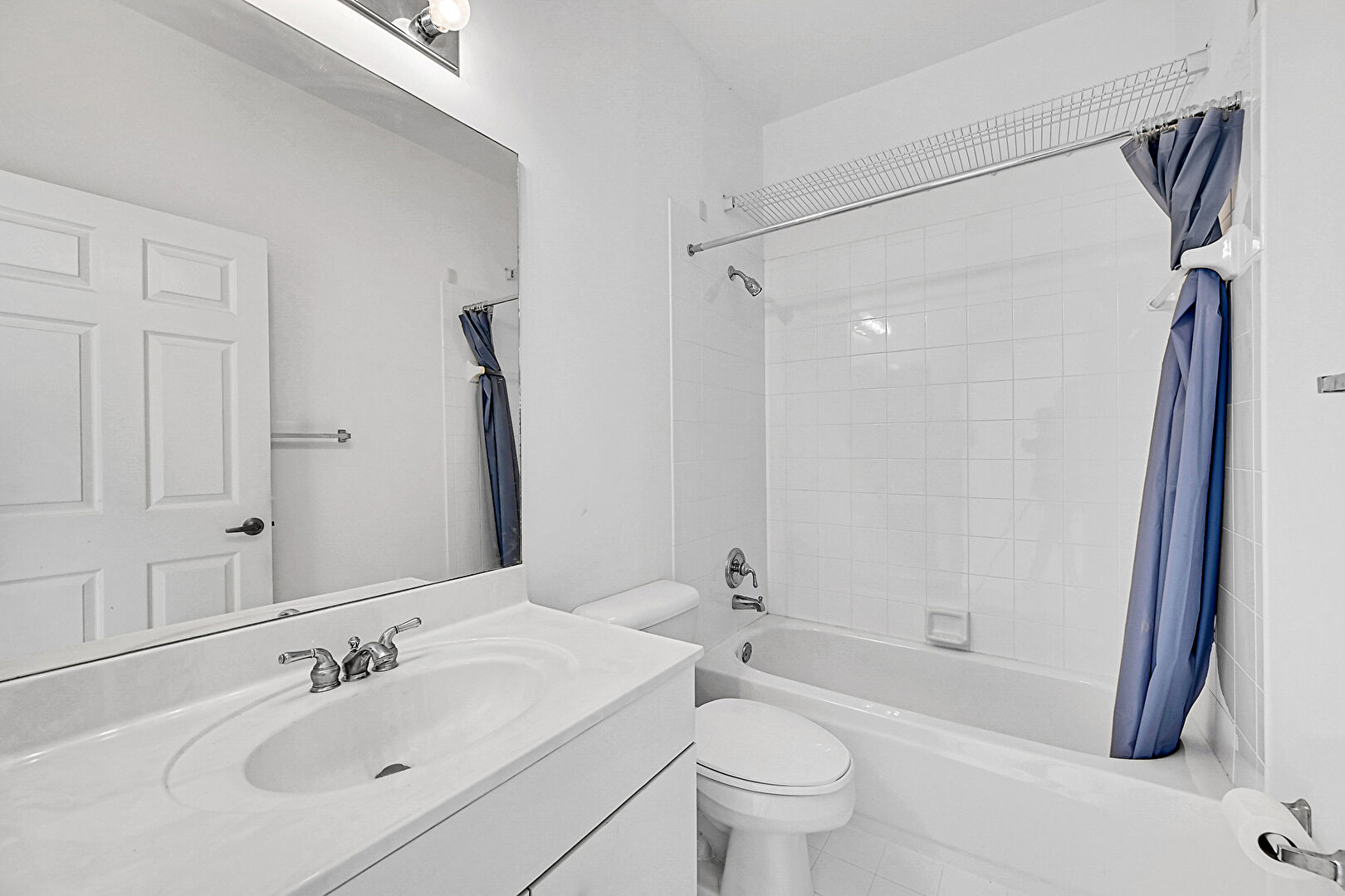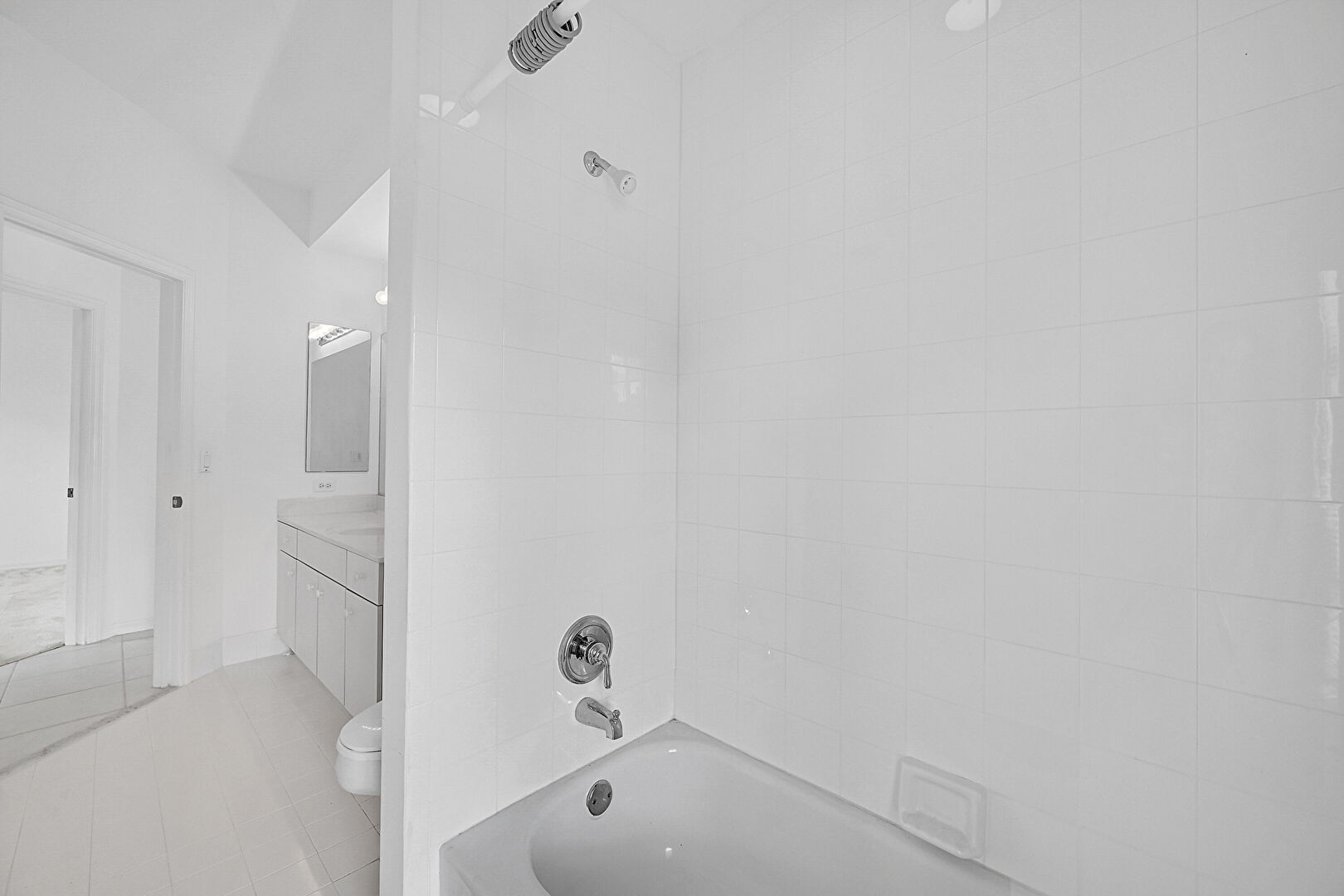 Baseboards Wall,  Combined Bath Shower,  Drywall,  Full Bathroom,  Natural Light,  Tile Floor,  Vanity, Combined Bath Shower, Tile Floor, Vent