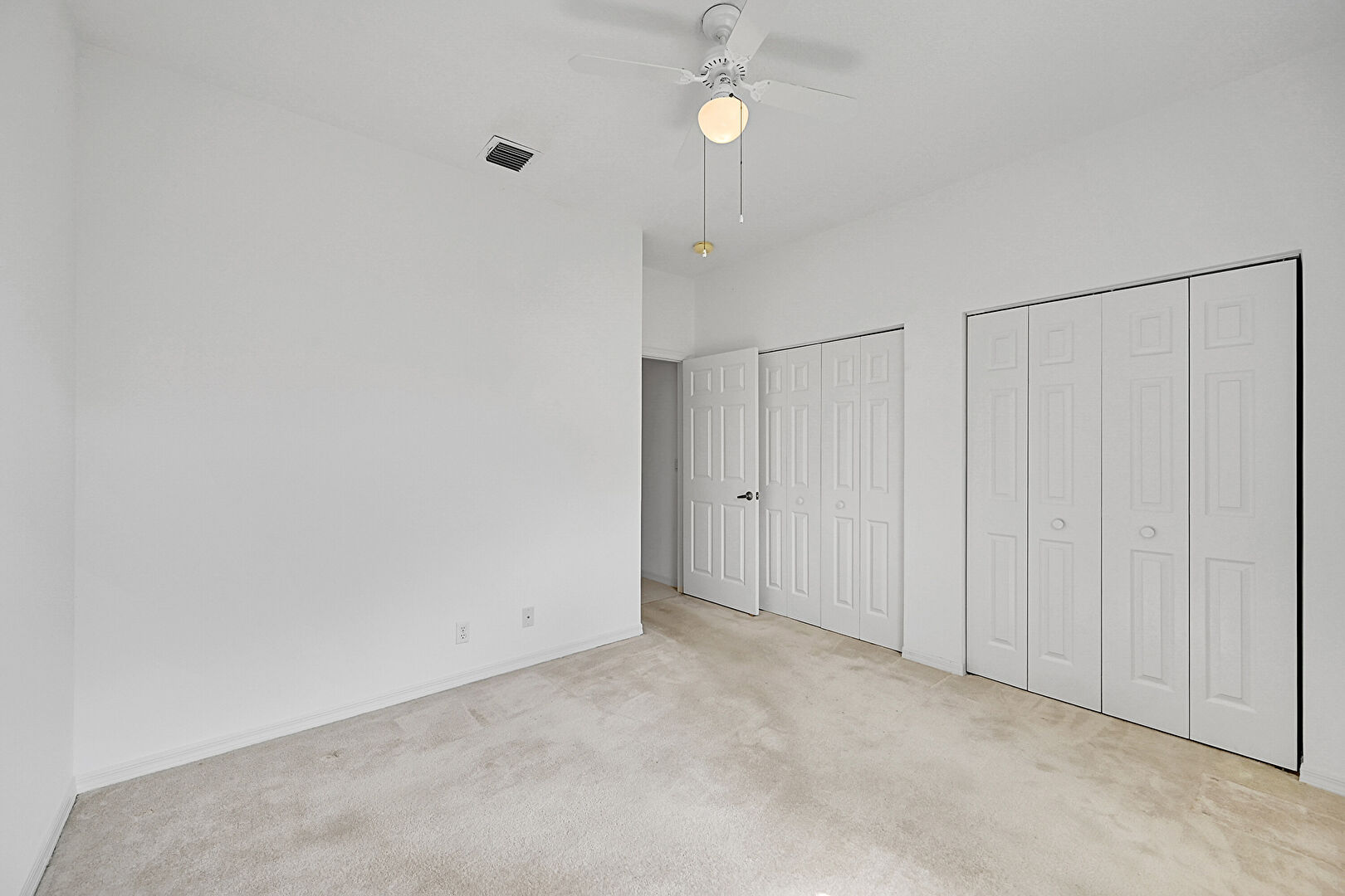 Baseboards Wall,  Carpet,  Ceiling Fan,  Closet,  Drywall,  Natural Light,  Smoke  Carbon Monoxide Detector,  Two Closets,  Vent, Carpet, Ceiling Fan, Closet, Drywall, Natural Light