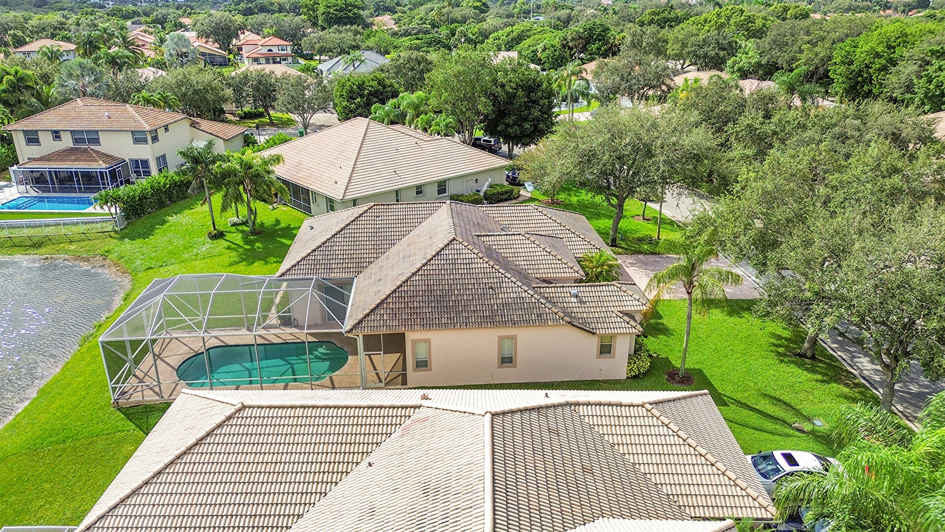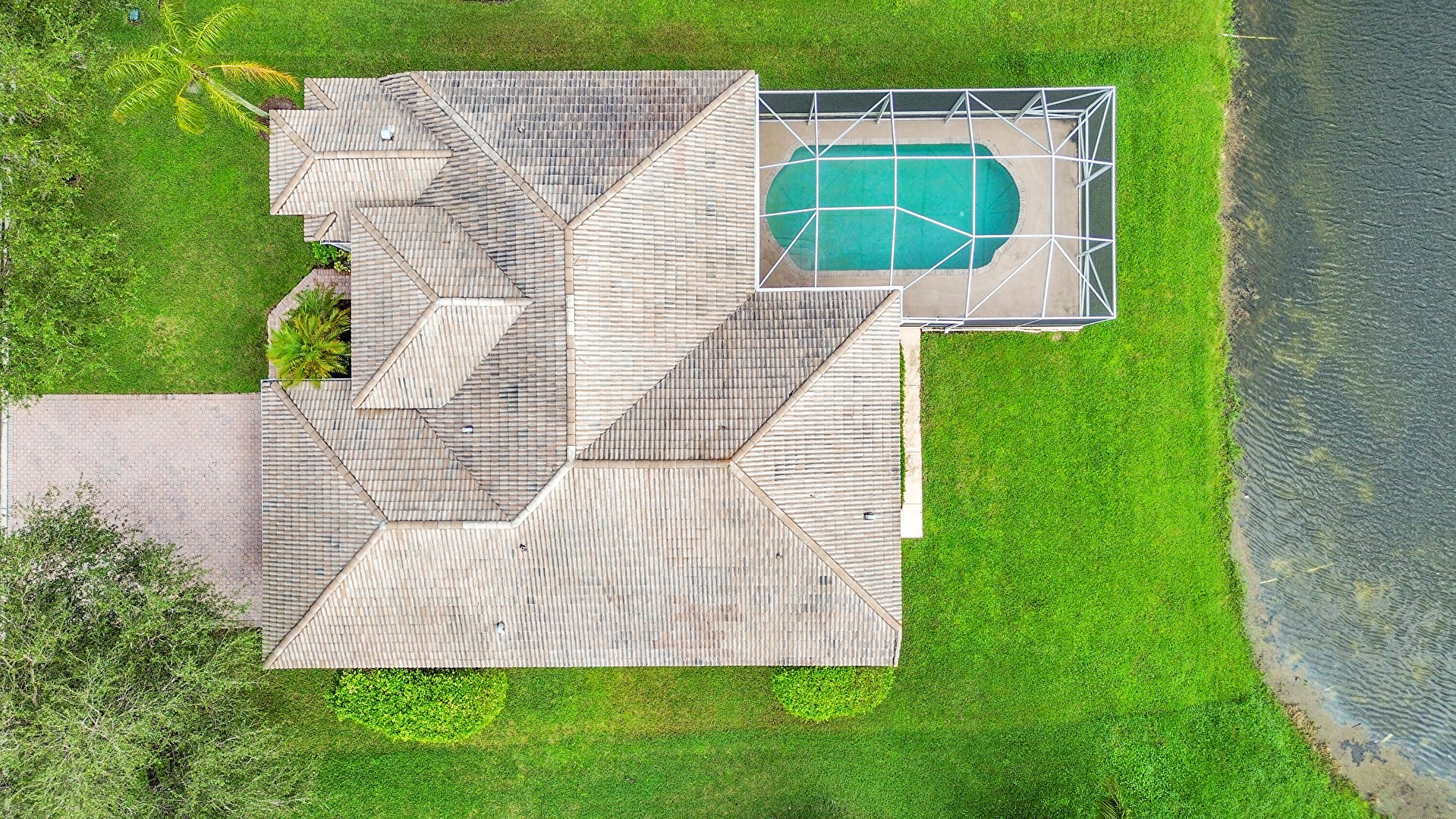Lanai,  Lawn,  Pool,  Stucco Siding,  Sunroom,  Tile Roof,  Water View,  Waterfront,  Woods View, Lanai, Sunroom, Water View