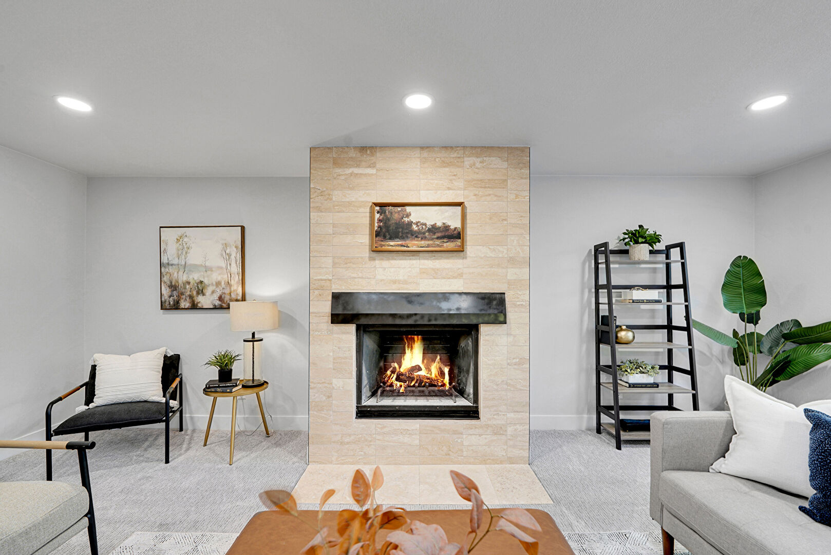 Baseboards Wall,  Carpet,  Drywall,  Recessed Lighting, Fireplace