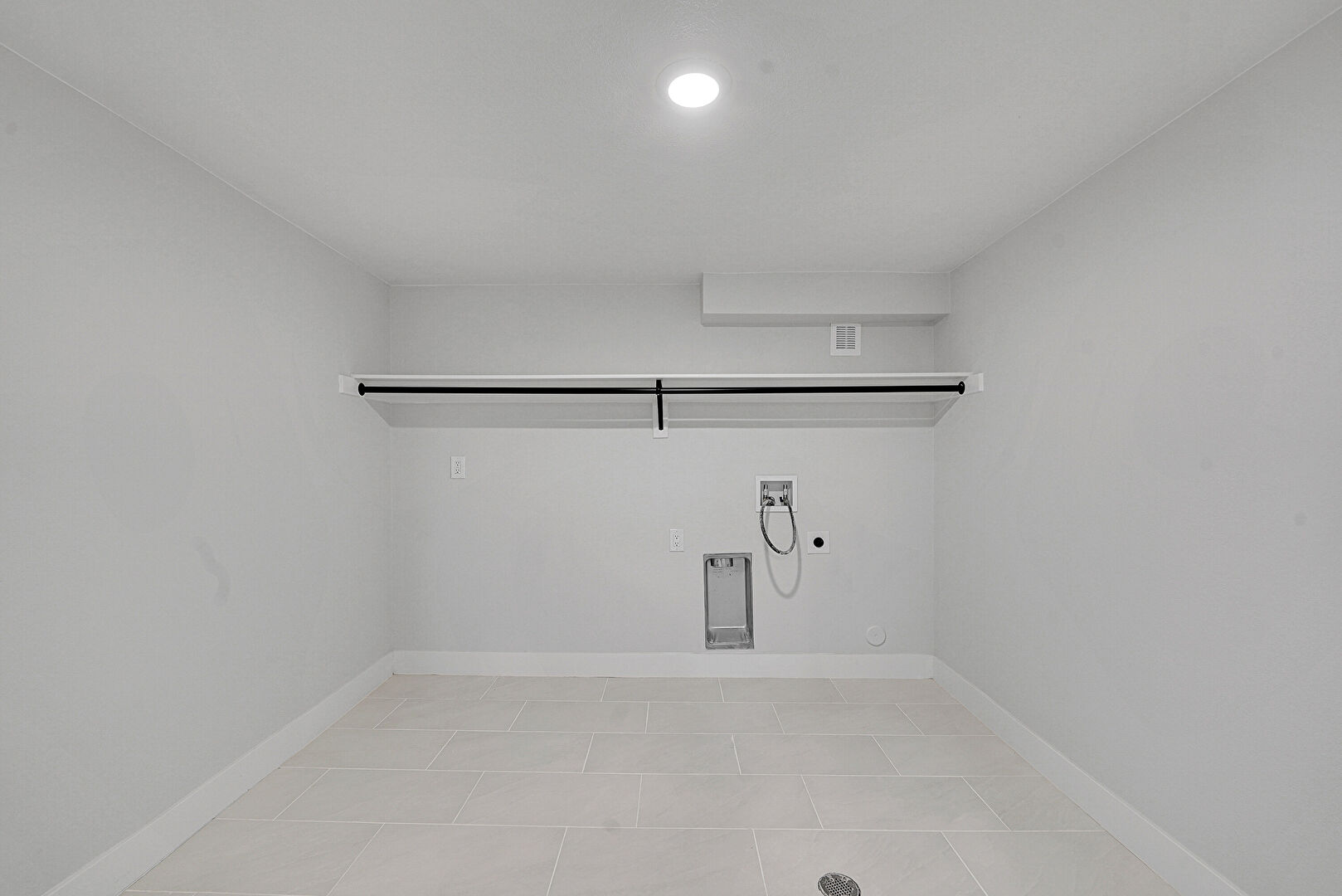 Baseboards Wall,  Drywall,  Electric Dryer Hookup,  Recessed Lighting,  Tile Floor,  Vent,  Washer Hookup, Laundry