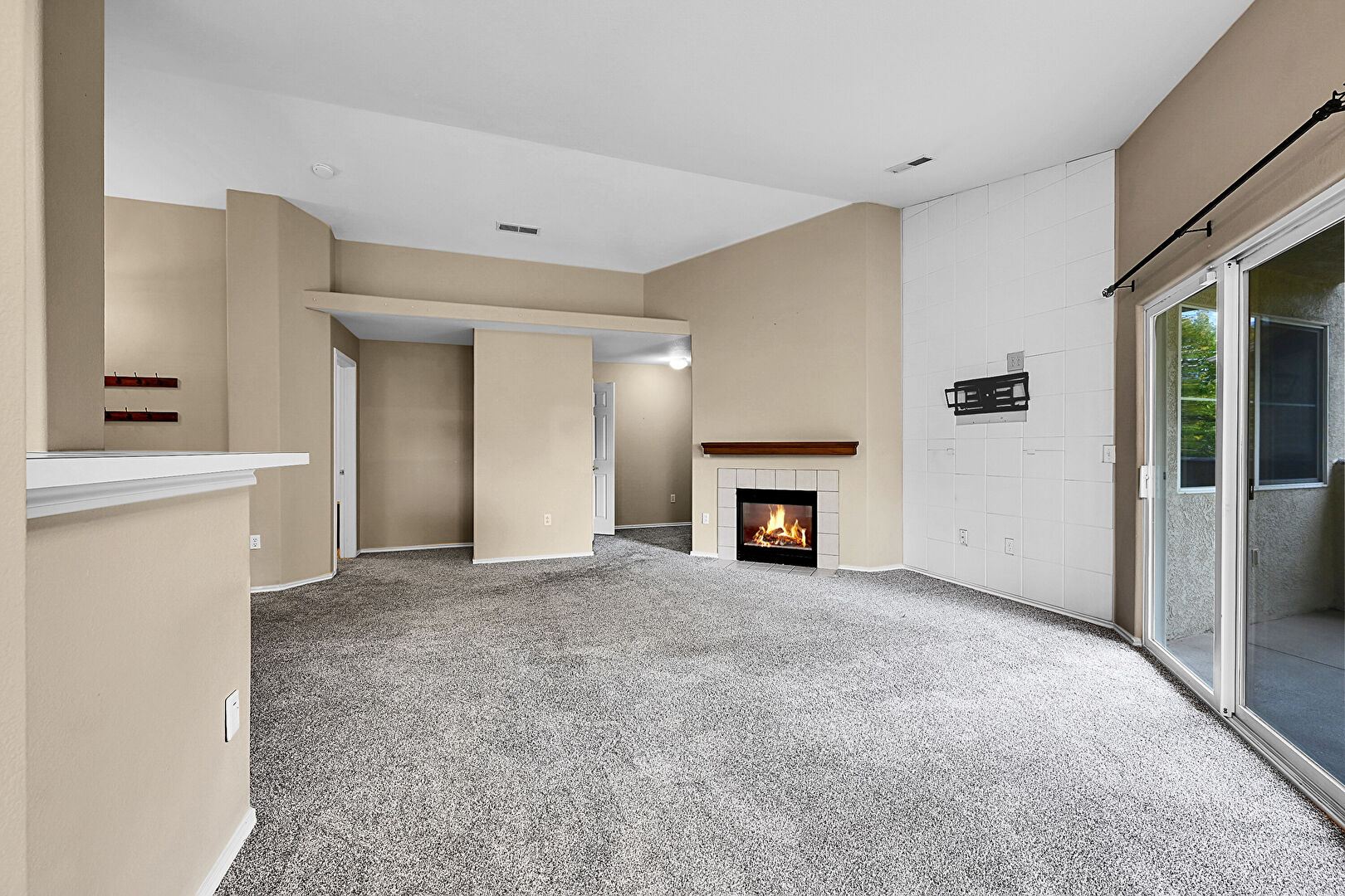 Baseboards Wall, Carpet, Drywall, Fireplace, High Ceiling, Natural Light, Notable Chandelier, Vaulted Ceiling, Vent, Baseboards Wall, Drywall, Fireplace, Notable Chandelier