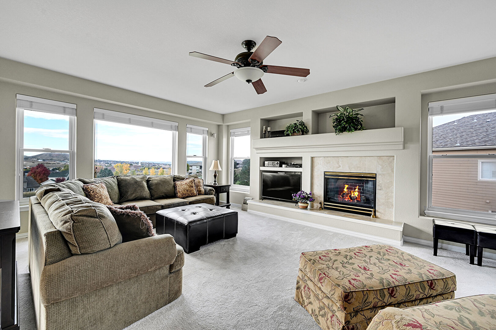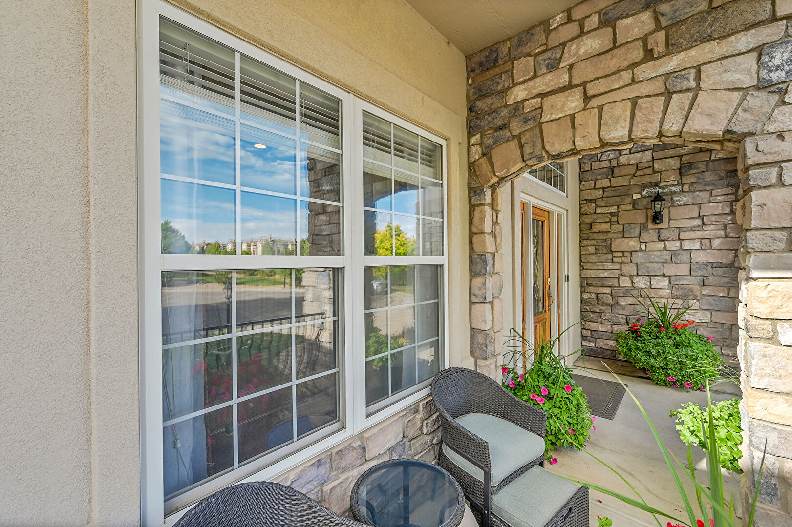 Balcony, Built In Garage, Central Ac, Downspout, Driveway, Fence, Gutters, Lawn, Mountain View, Residential View, Shingle Roof, Stone Siding, Stoop, Stucco Siding, Water View, Built In Garage, Downspout, Driveway, Garage, Stucco Siding