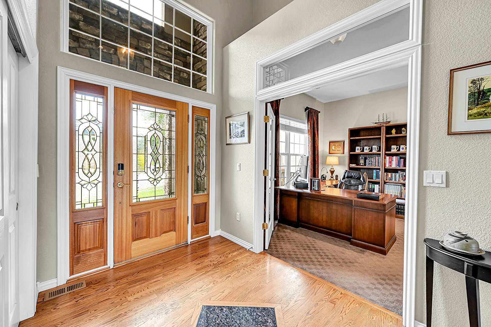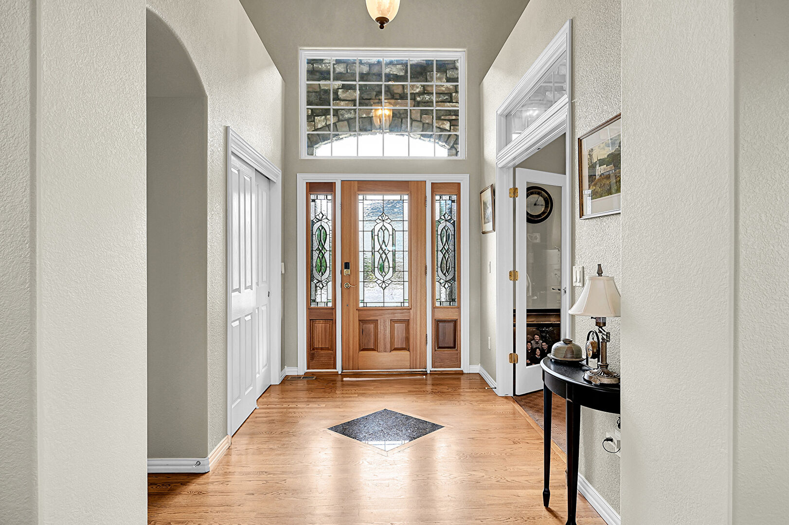 Arched Walkways, Baseboards Wall, Drywall, High Ceiling, Natural Light, Recessed Lighting, Stairs, Textured Wall, Vent, Wood Finish Floor, Drywall, High Ceiling, Recessed Lighting, Wood Finish Floor