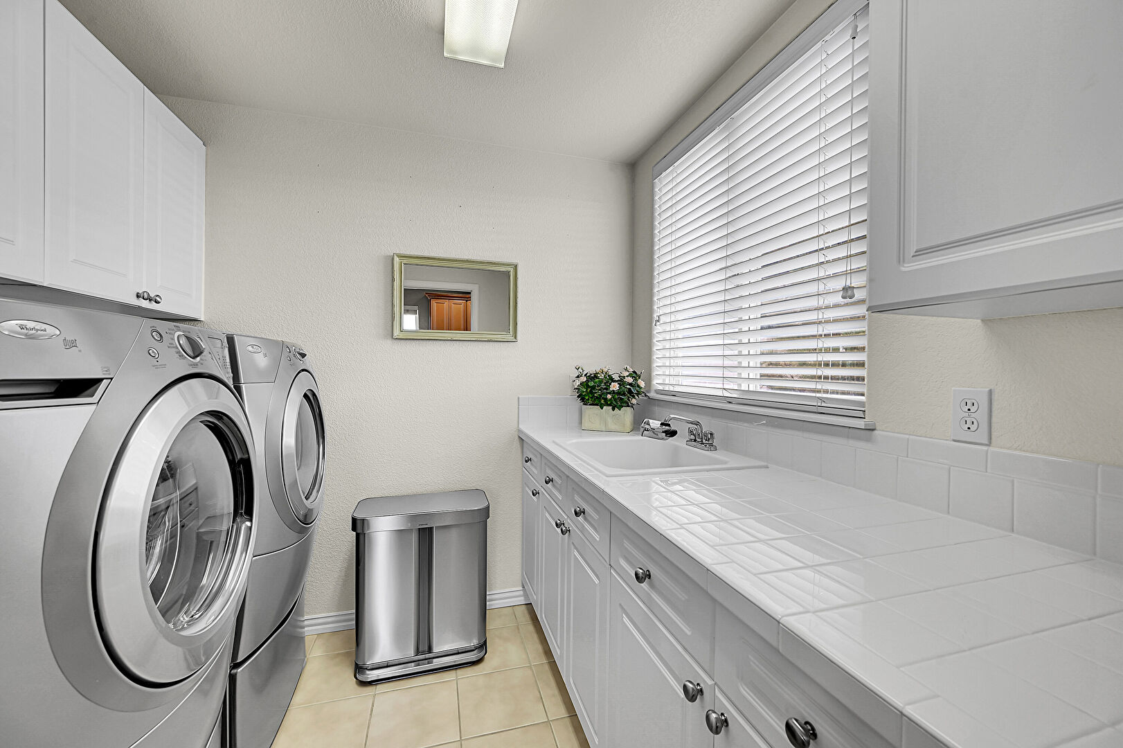 Baseboards Wall, Laundry, Natural Light, Textured Wall, Tile Floor