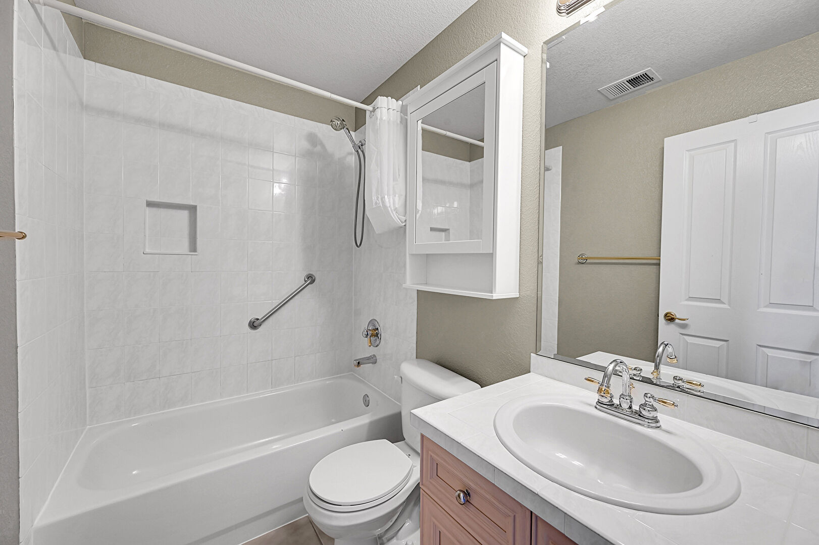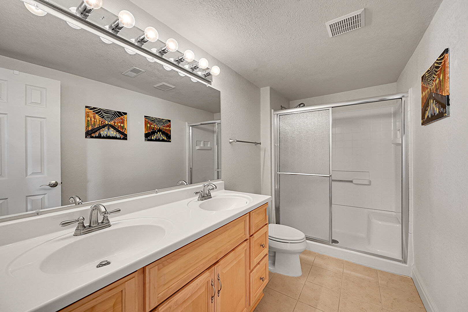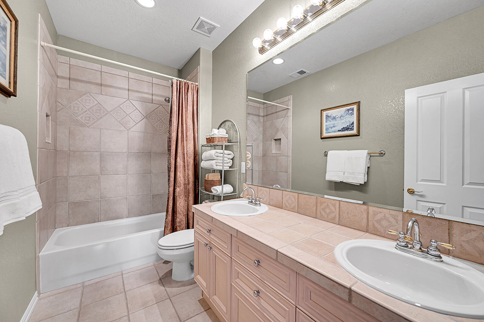 Baseboards Wall, Combined Bath Shower, Double Vanity, Drywall, Full Bathroom, Half Bathroom, Recessed Lighting, Textured Ceiling, Textured Wall, Tile Floor, Vent, Combined Bath Shower, Vanity, Vent, Wood Finish Floor
