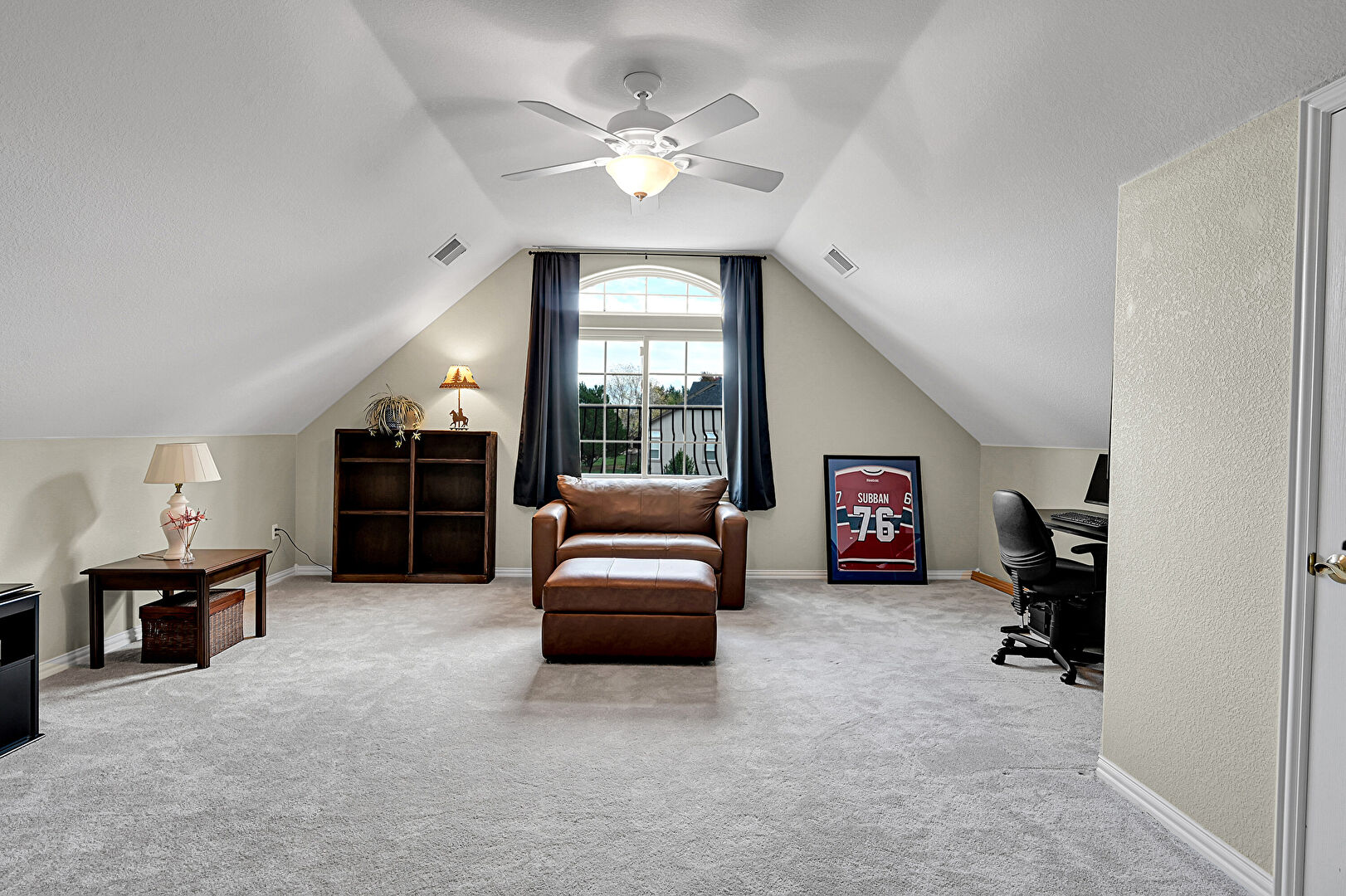 Arched Walkways, Baseboards Wall, Bonus Room, Carpet, Cathedral Ceiling, Ceiling Fan, Closet, Drywall, Ensuite Bathroom, Natural Light, Office Area, Recessed Lighting, Scuttle, Smoke Carbon Monoxide Detector, Textured Ceiling, Textured Wall, Vaulted Ceiling, Vent, Baseboards Wall, Carpet, Cathedral Ceiling, Drywall, Natural Light, Recessed Lighting, Vaulted Ceiling, Vent