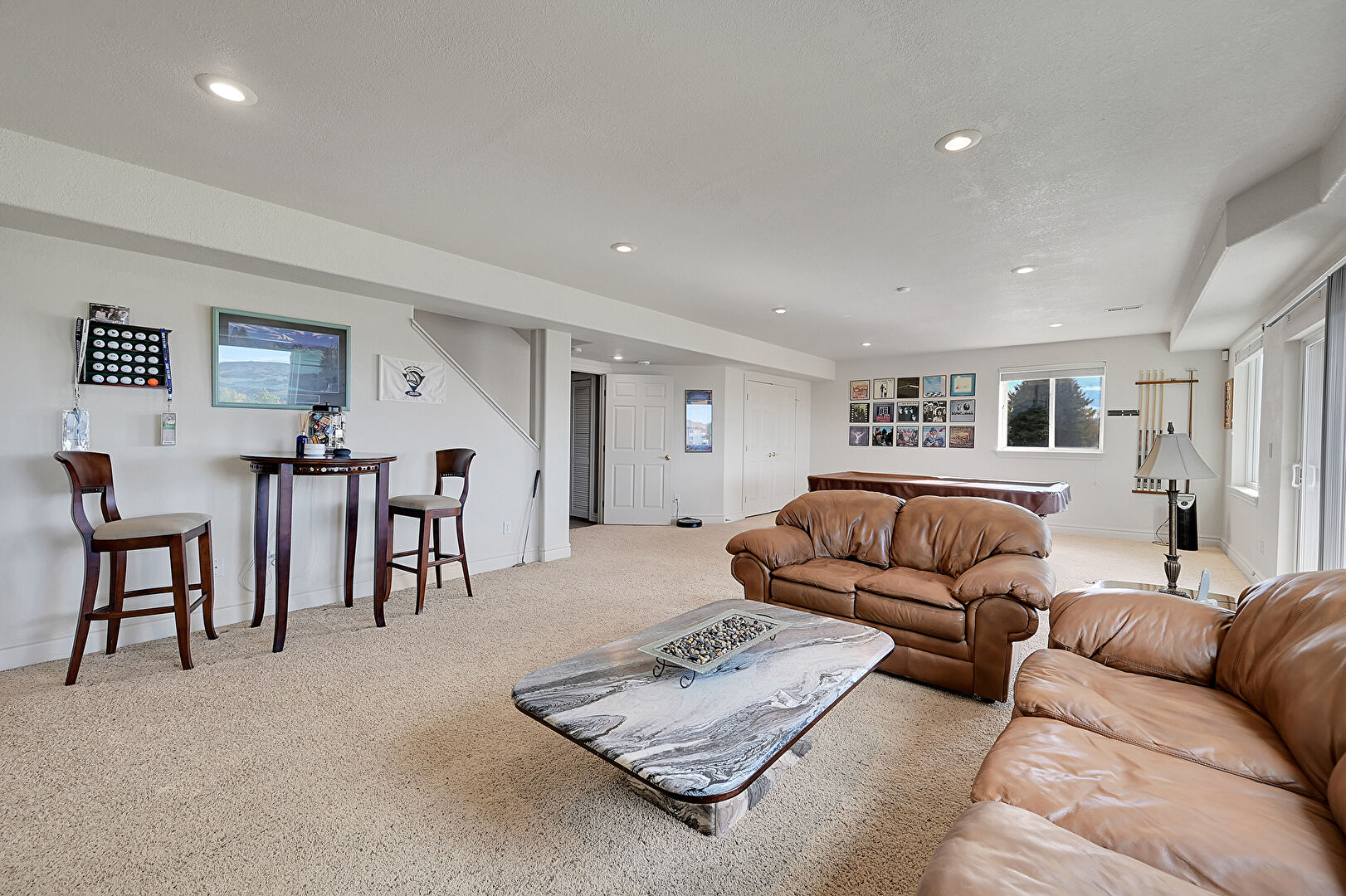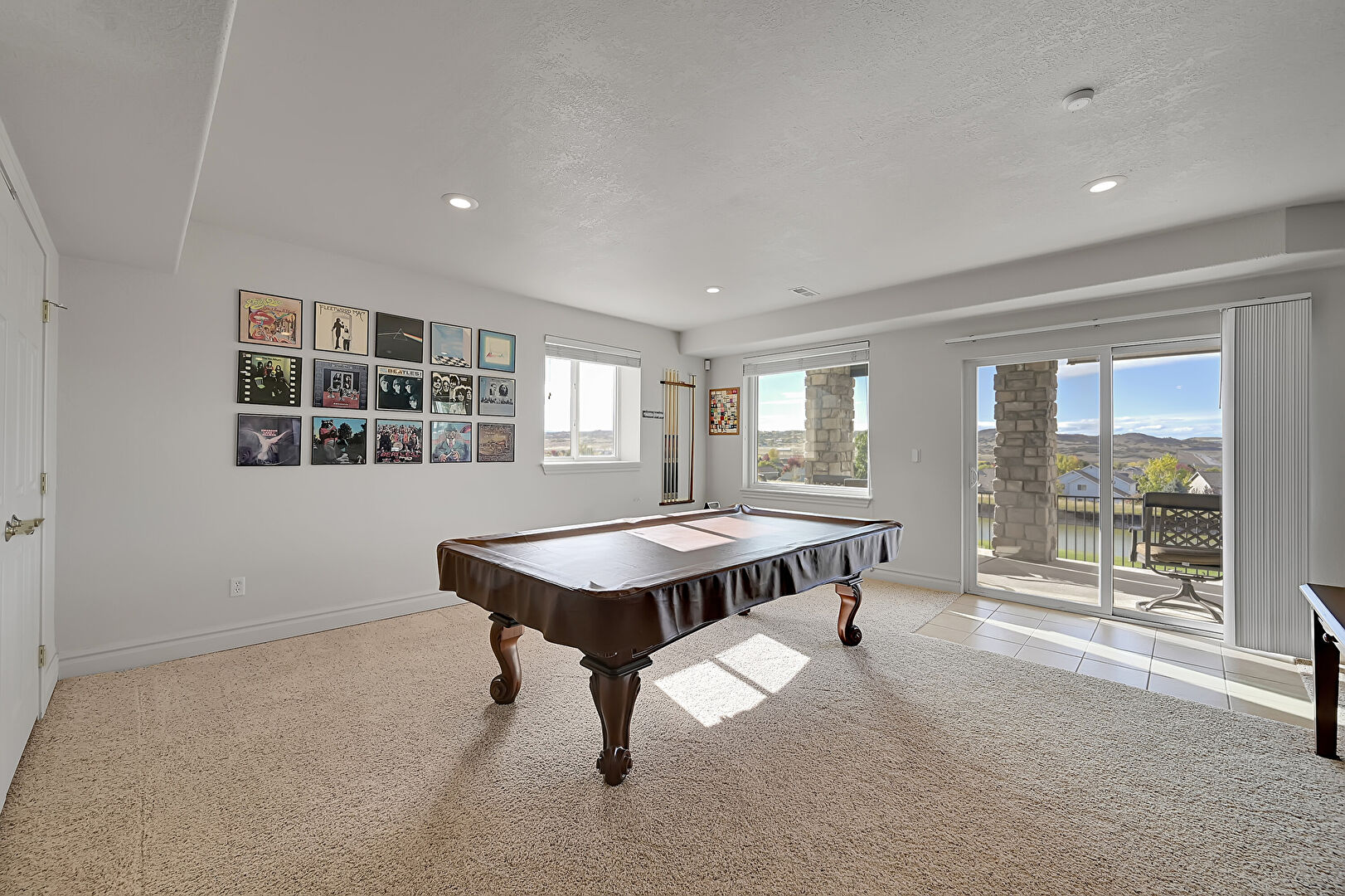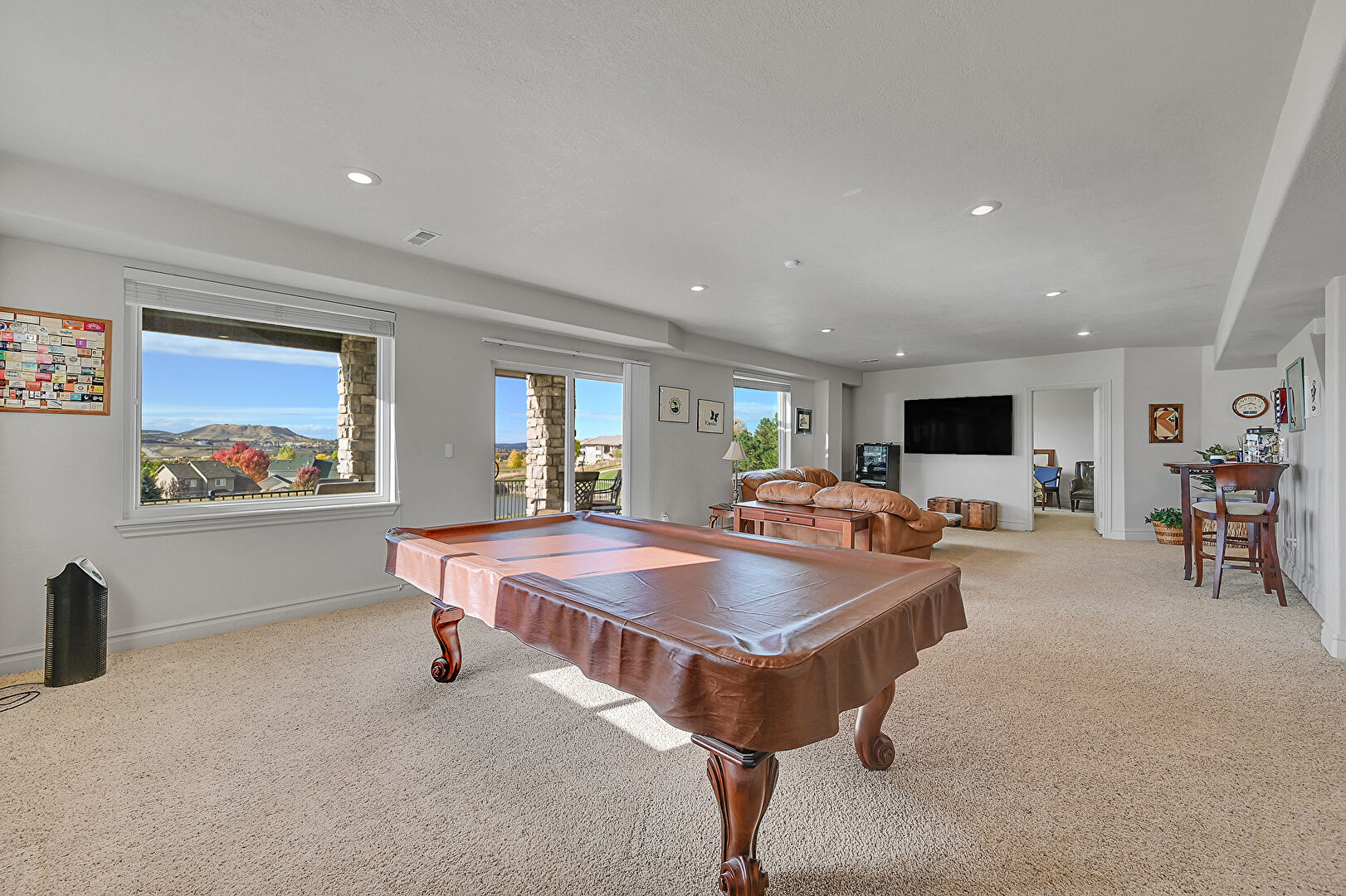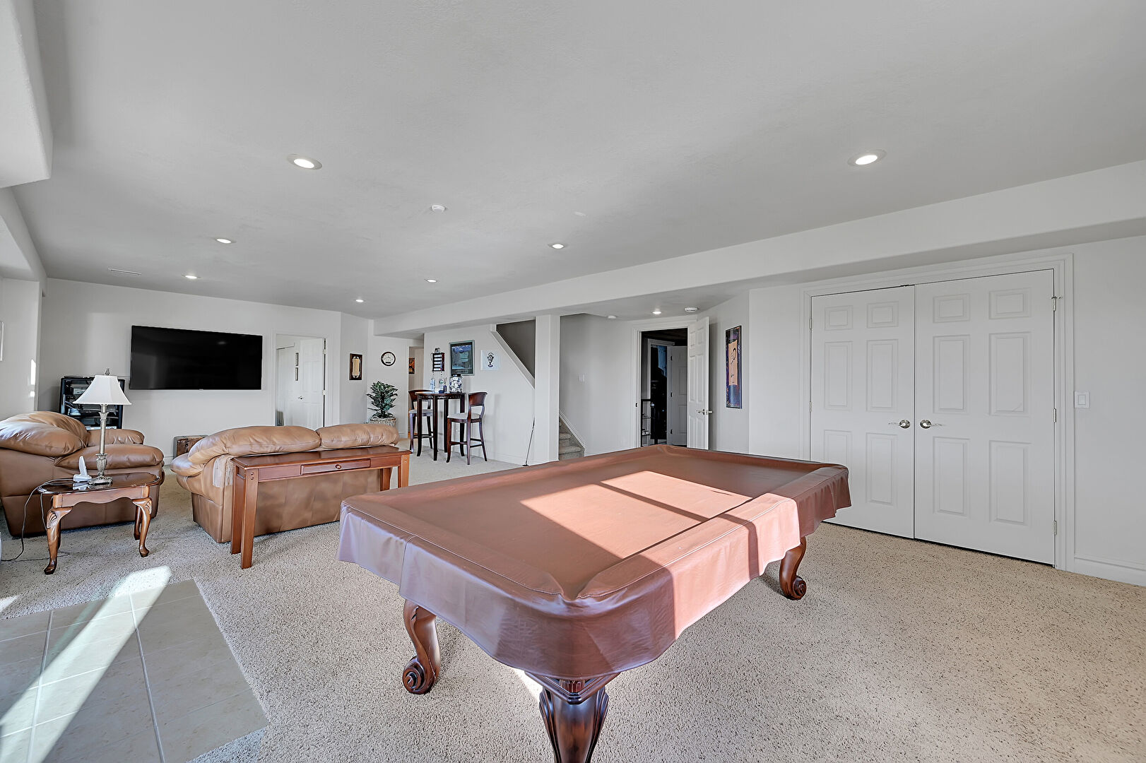 Baseboards Wall, Basement, Billiards, Carpet, Drywall, Natural Light, Recessed Lighting, Smoke Carbon Monoxide Detector, Textured Ceiling, Tile Floor, Vent, Baseboards Wall, Basement, Carpet, Drywall, Natural Light, Recessed Lighting