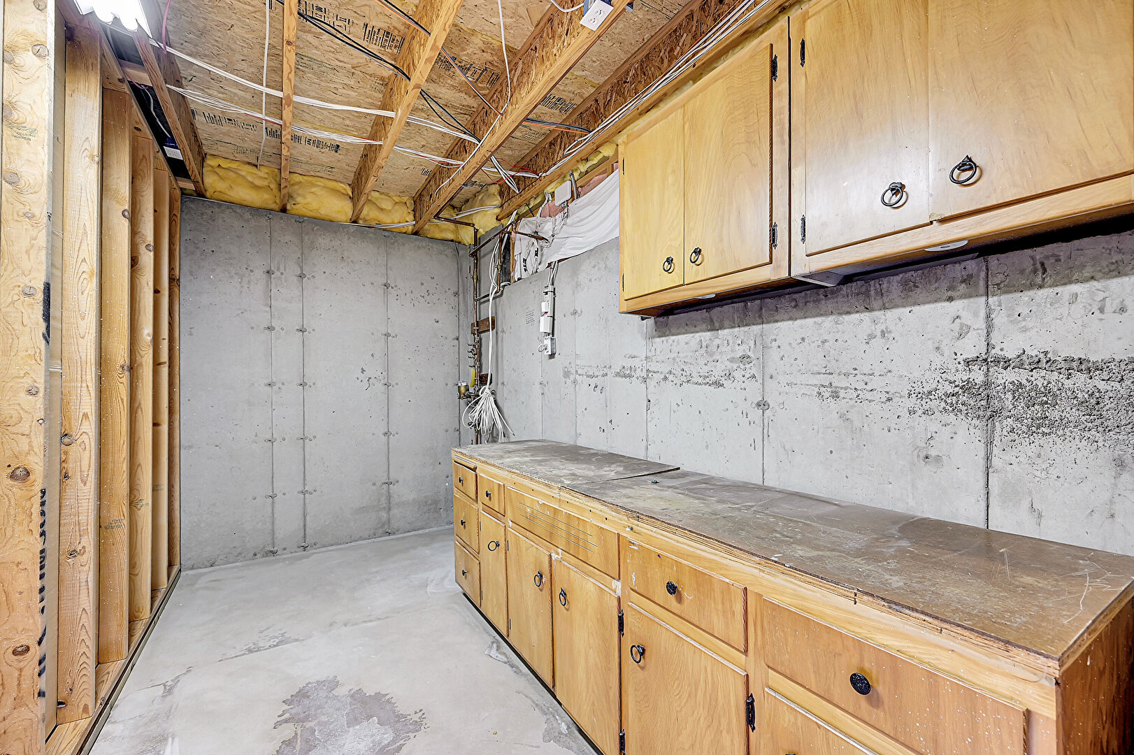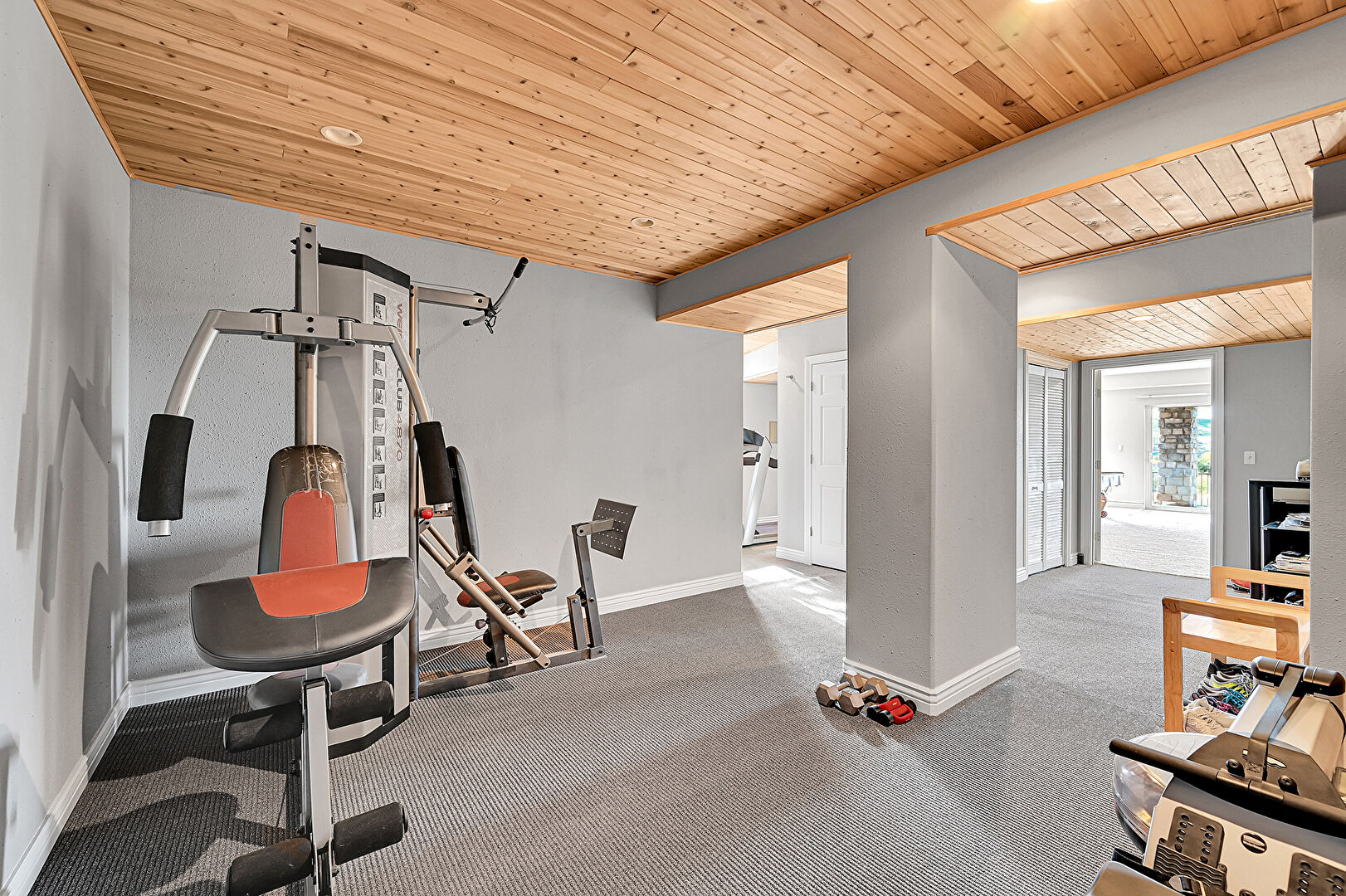 Baseboards Wall, Carpet, Drywall, Natural Light, Wood Ceiling, Basement
