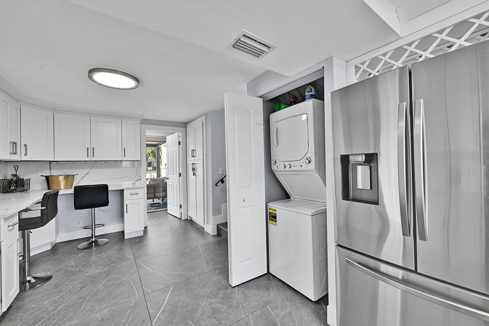 Baseboards Wall, Drywall, Natural Light, Office Area, Tile Floor, Vent, Laundry