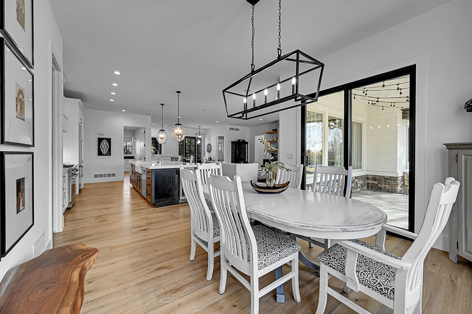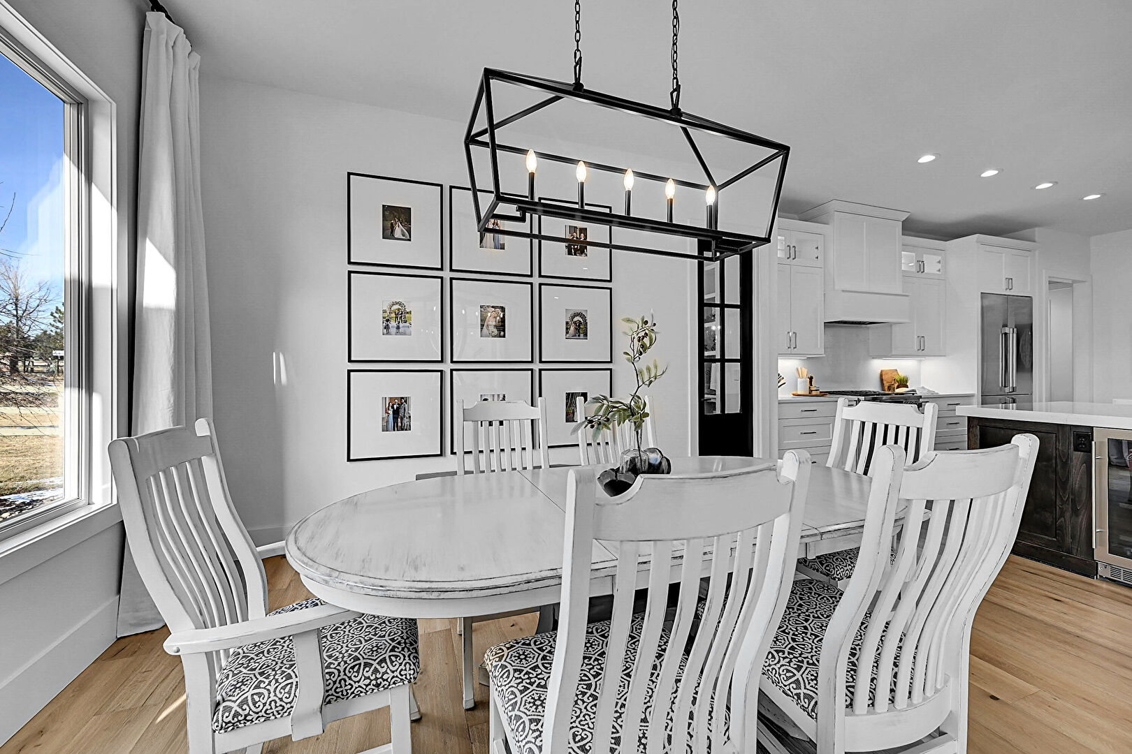 Baseboards Wall, Drywall, Notable Chandelier, Recessed Lighting, Vent, Wine Cooler, Wood Finish Floor, Natural Light