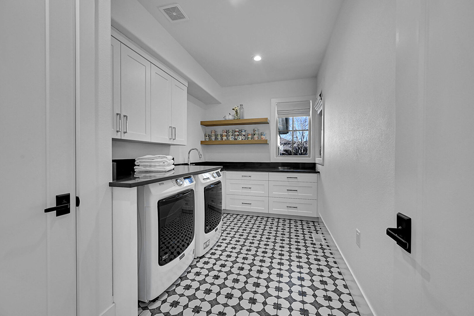 Baseboards Wall, Drywall, Laundry, Natural Light, Recessed Lighting, Vent, Vinyl Floor