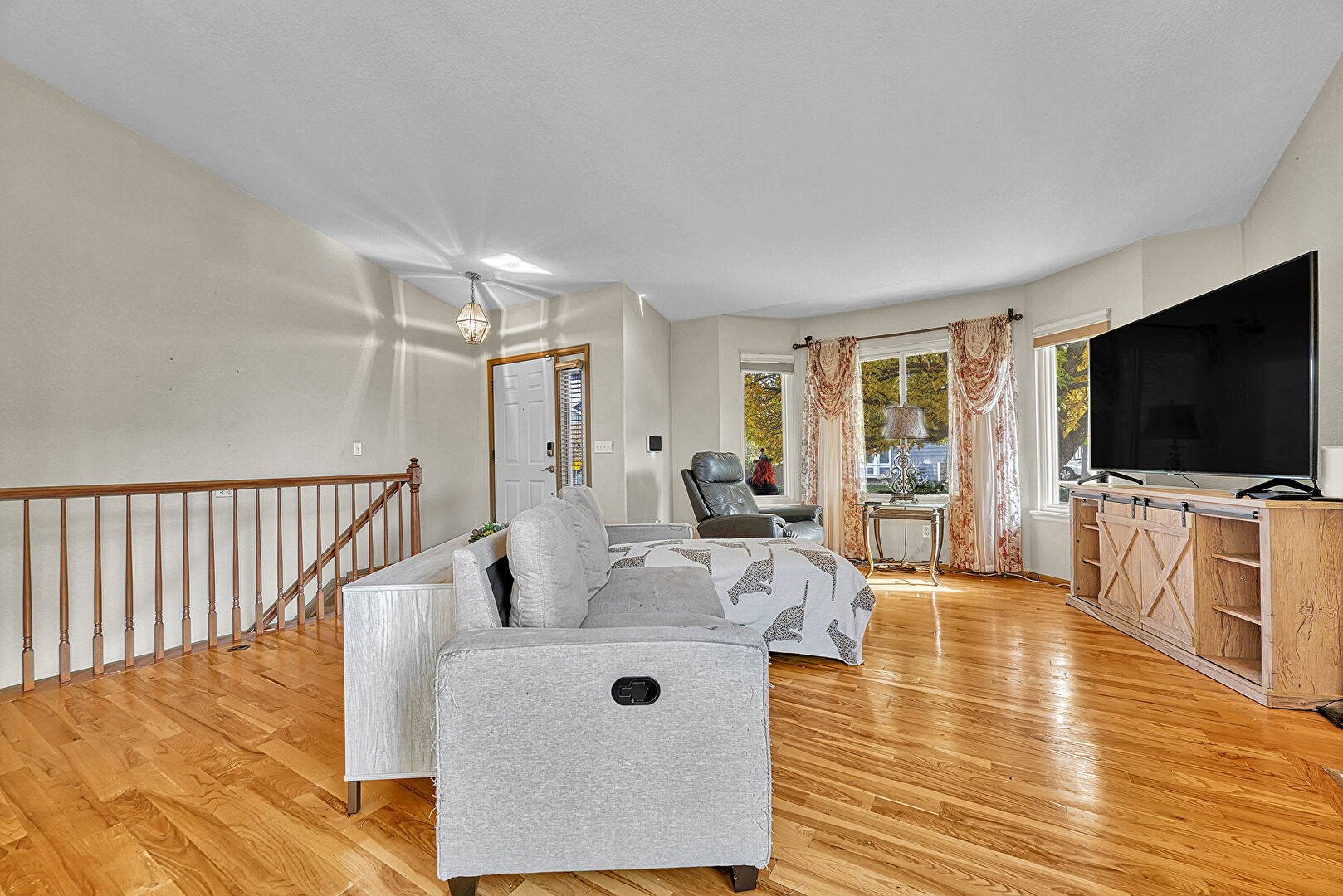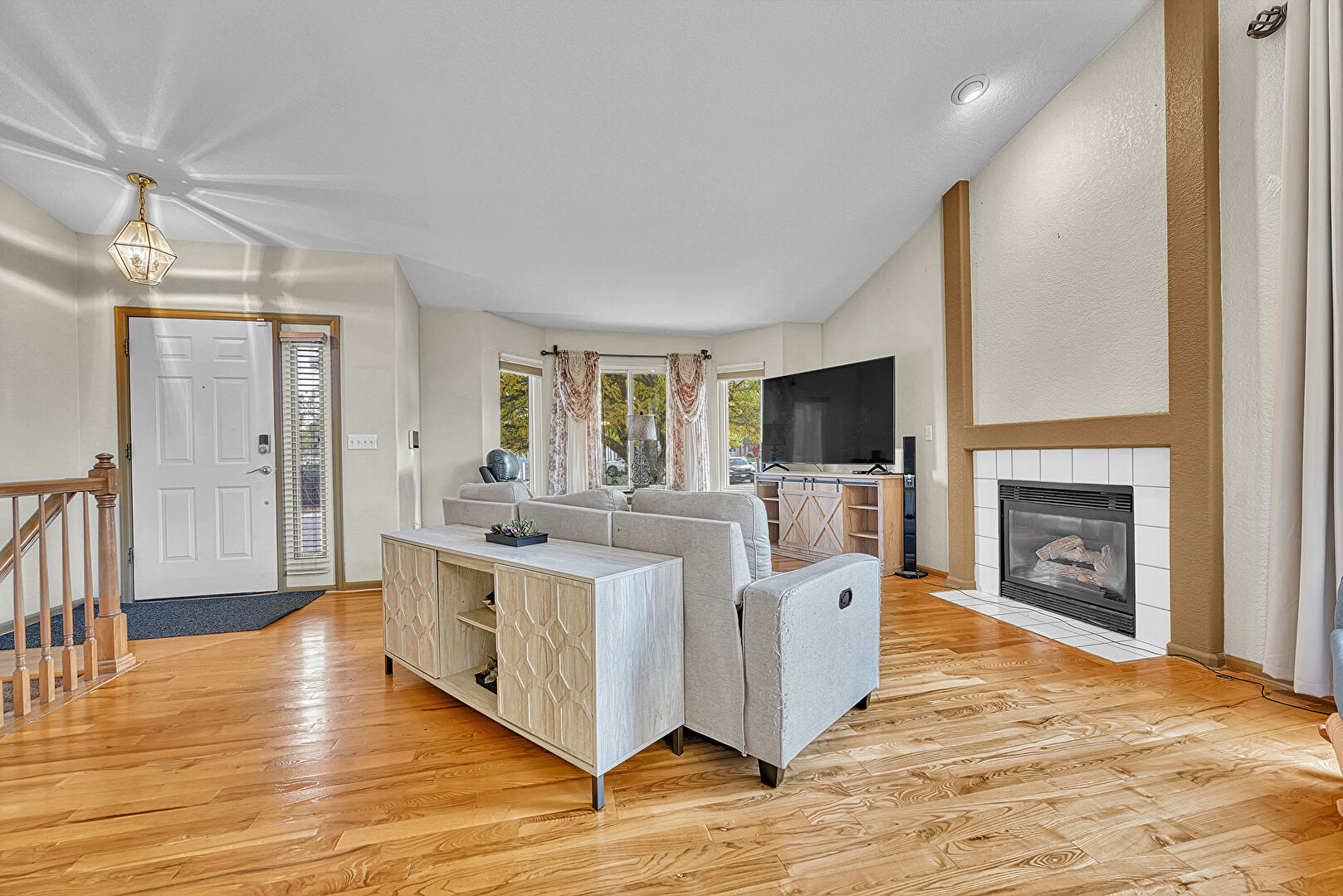 Baseboards Wall, Ceiling Fan, Drywall, Fireplace, Natural Light, Notable Chandelier, Recessed Lighting, Textured Ceiling, Vaulted Ceiling, Wood Finish Floor, Baseboards Wall, Fireplace, Textured Ceiling, Wood Finish Floor