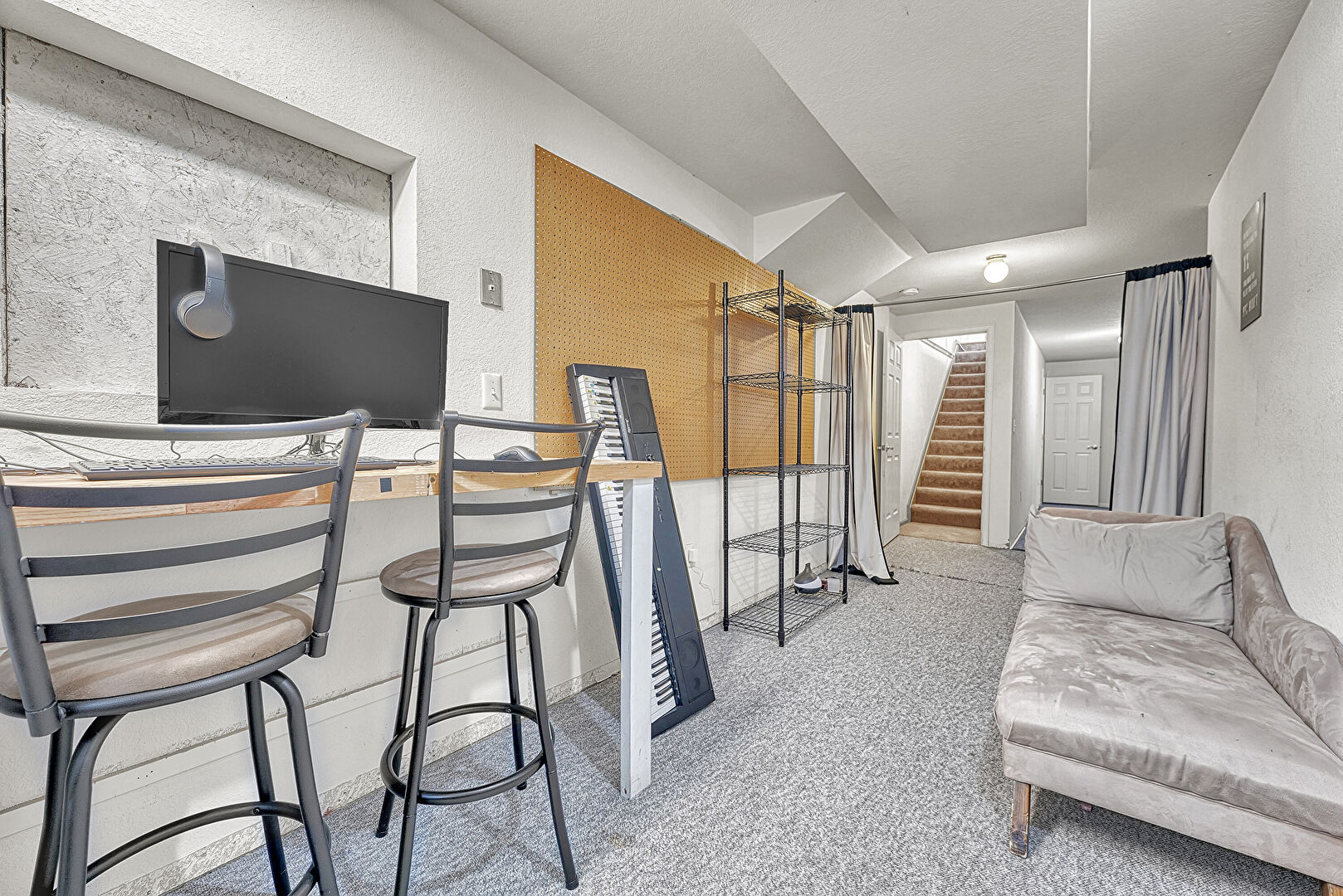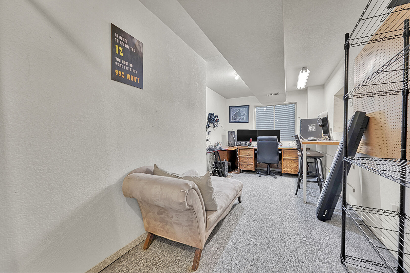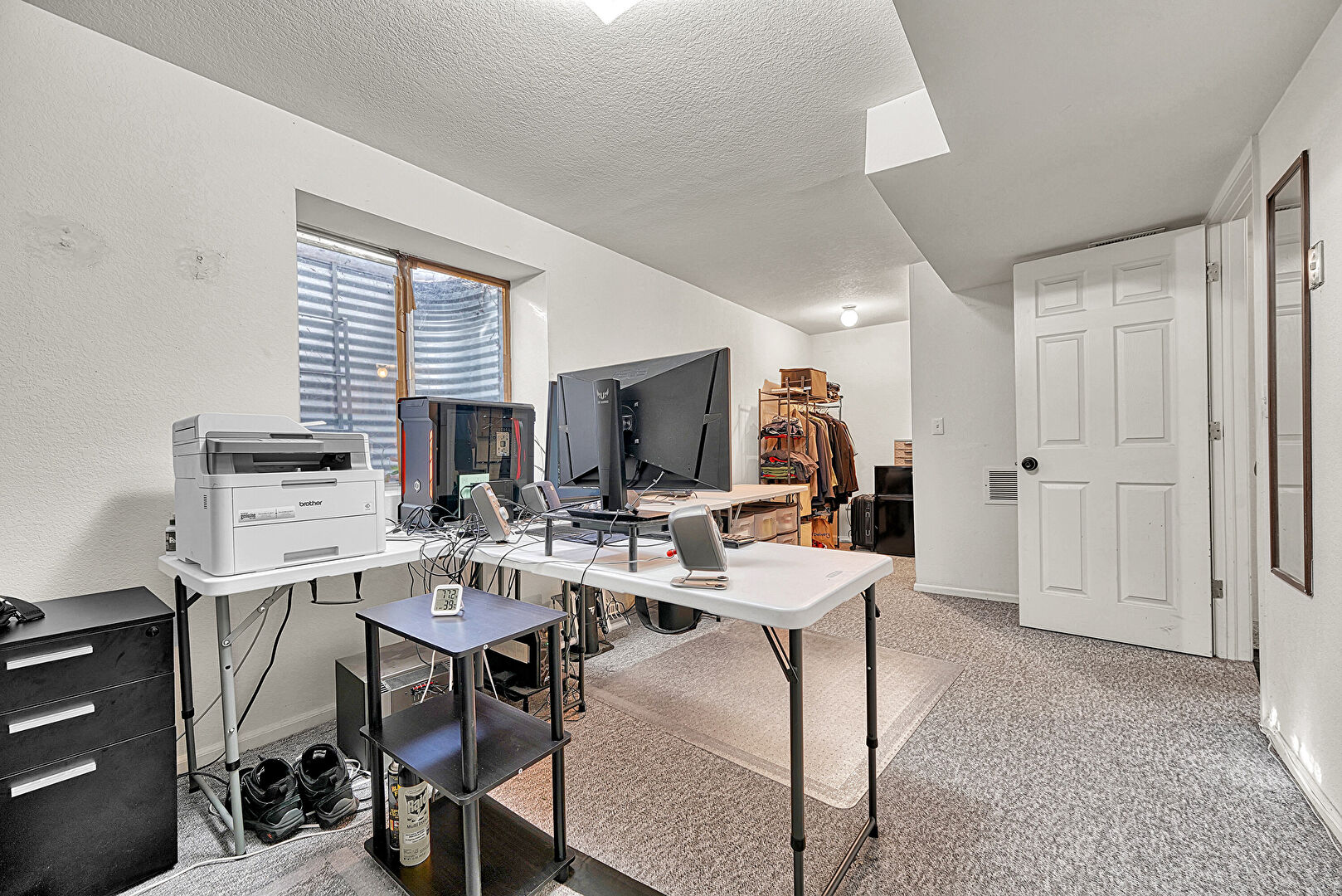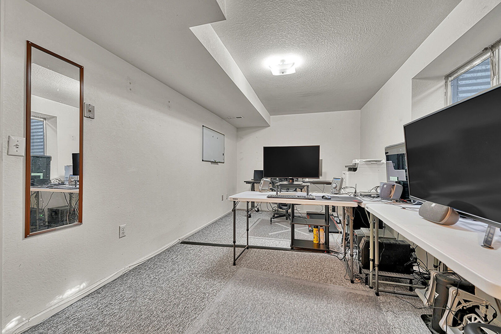 Baseboards Wall, Basement, Carpet, Office Area, Textured Wall, Carpet, Textured Ceiling