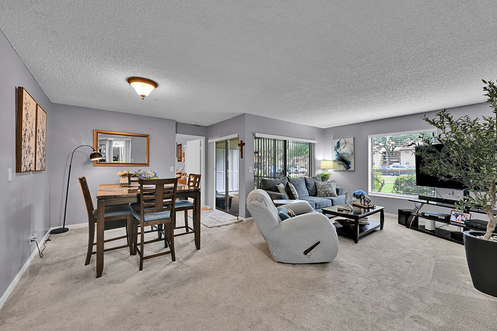 Baseboards Wall, Carpet, Drywall, Natural Light, Textured Ceiling, Vent, Drywall, Textured Ceiling, Vent