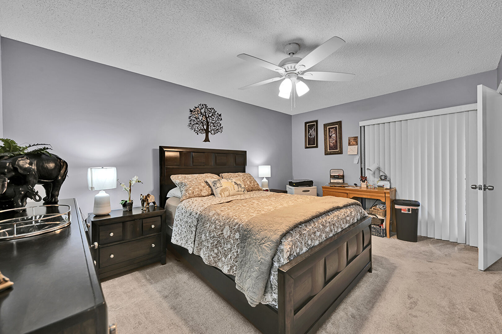 Baseboards Wall, Carpet, Ceiling Fan, Closet, Drywall, Natural Light, Office Area, Textured Ceiling, Vent, Carpet, Ceiling Fan, Drywall, Textured Ceiling
