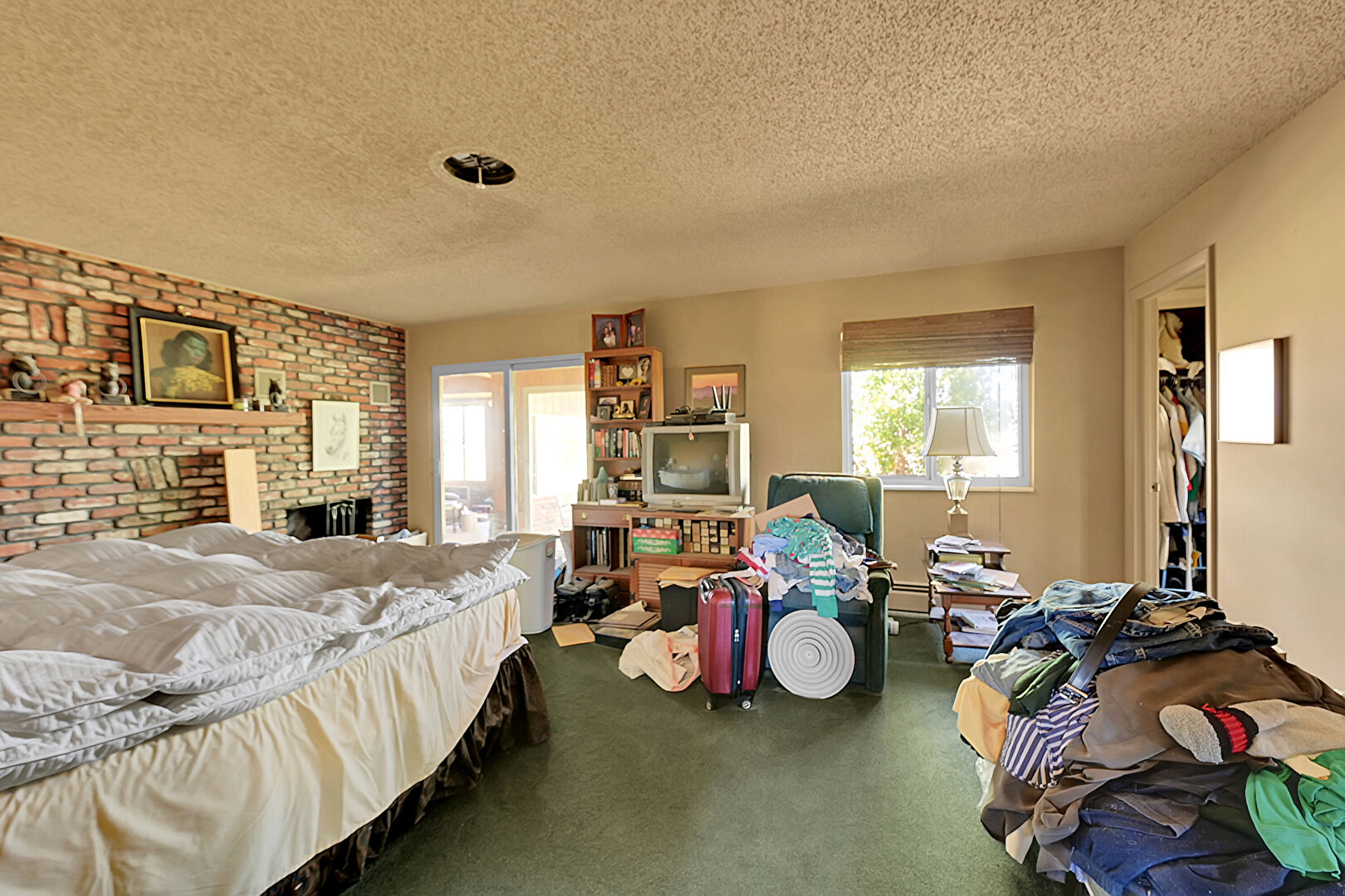 Baseboard Radiator,  Brick Wall,  Carpet,  Drywall,  Fireplace,  Natural Light,  Textured Ceiling,  Walk In Closet, Carpet, Drywall