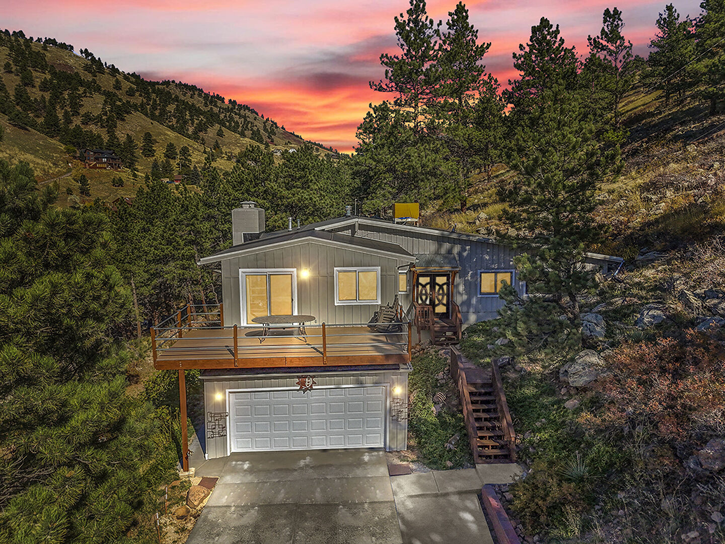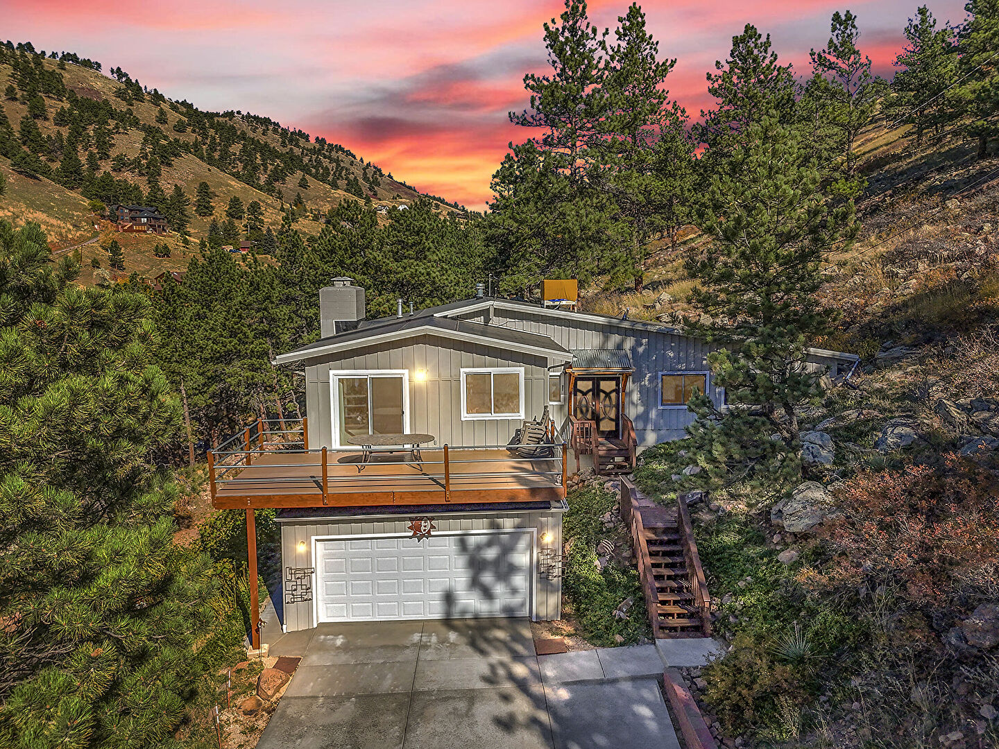 Balcony,  Basement Garage,  Board Batten Siding,  Built In Garage,  Chimney,  Deck,  Downspout,  Driveway,  Fence,  French Doors,  Gutters,  Patio,  Stairs,  Stoop,  Vertical Siding, Balcony, Board Batten Siding, Built In Garage, Driveway, Garage, Gutters, Lawn, Mountain View, Stairs, Vertical Siding