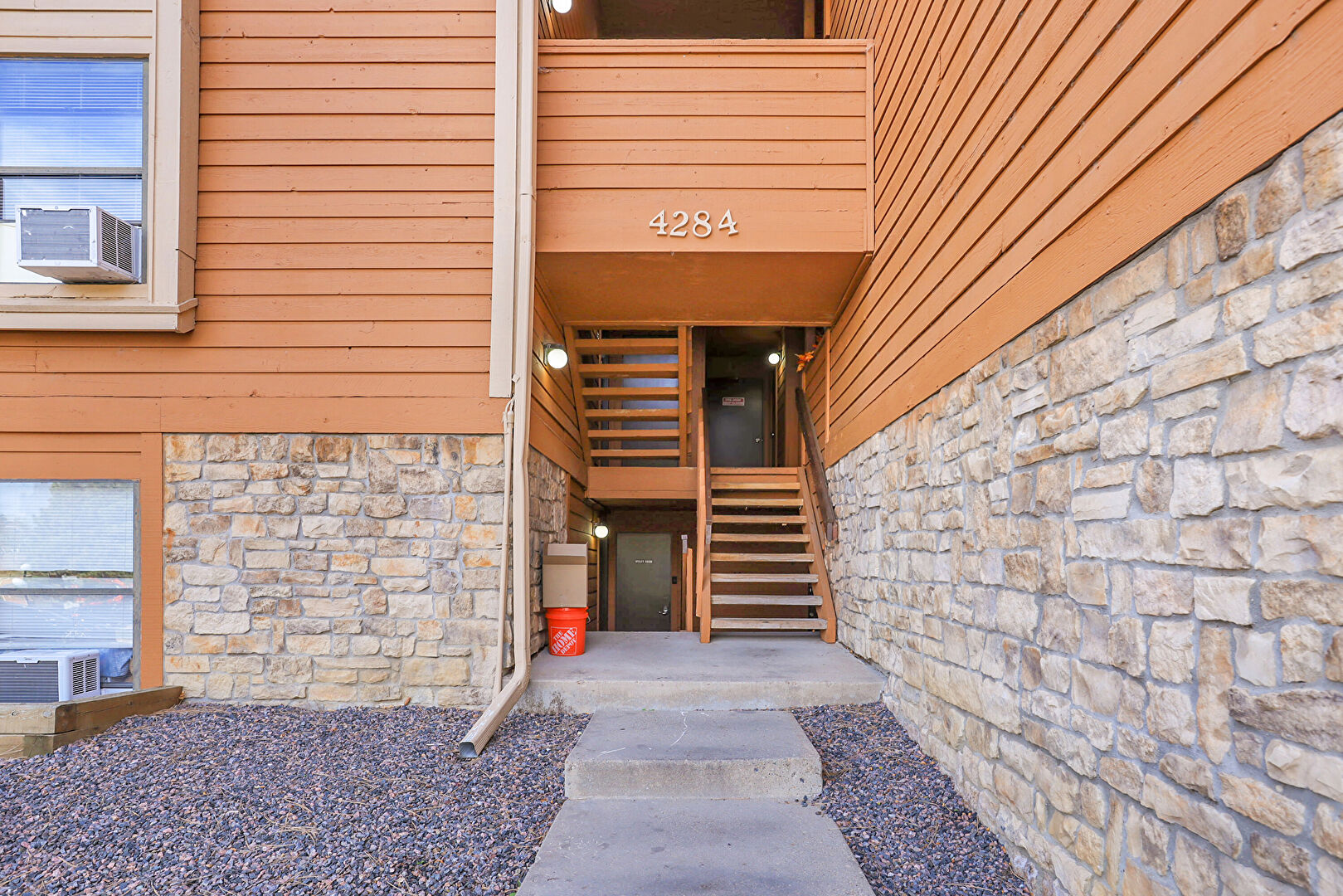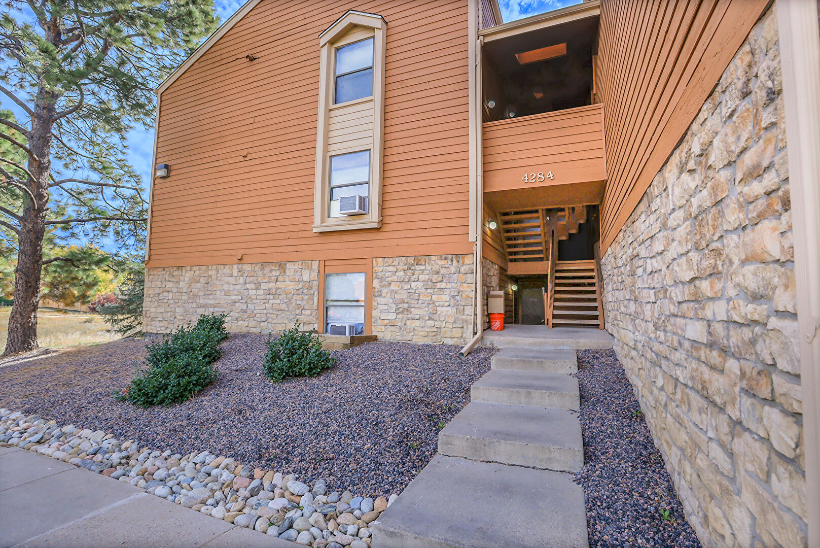 Carpet, Chimney, Downspout, Gutters, Horizontal Siding, Lawn, Satellite Dish, Stone Siding, Stoop, Wood Wall, Horizontal Siding, Natural Light, Parking Lot, Parking Pad, Patio, Stone Siding, Vent, Window Mounted Ac