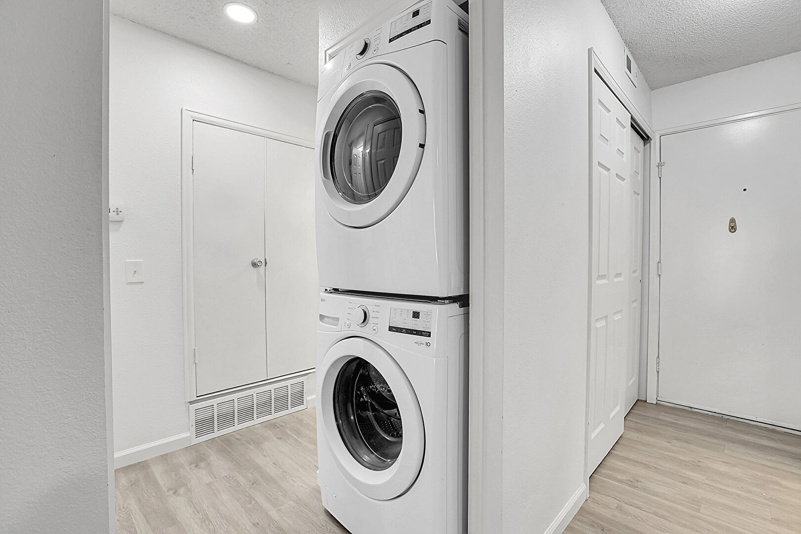 Baseboards Wall, Laundry, Textured Wall, Vent, Wood Finish Floor, Textured Ceiling