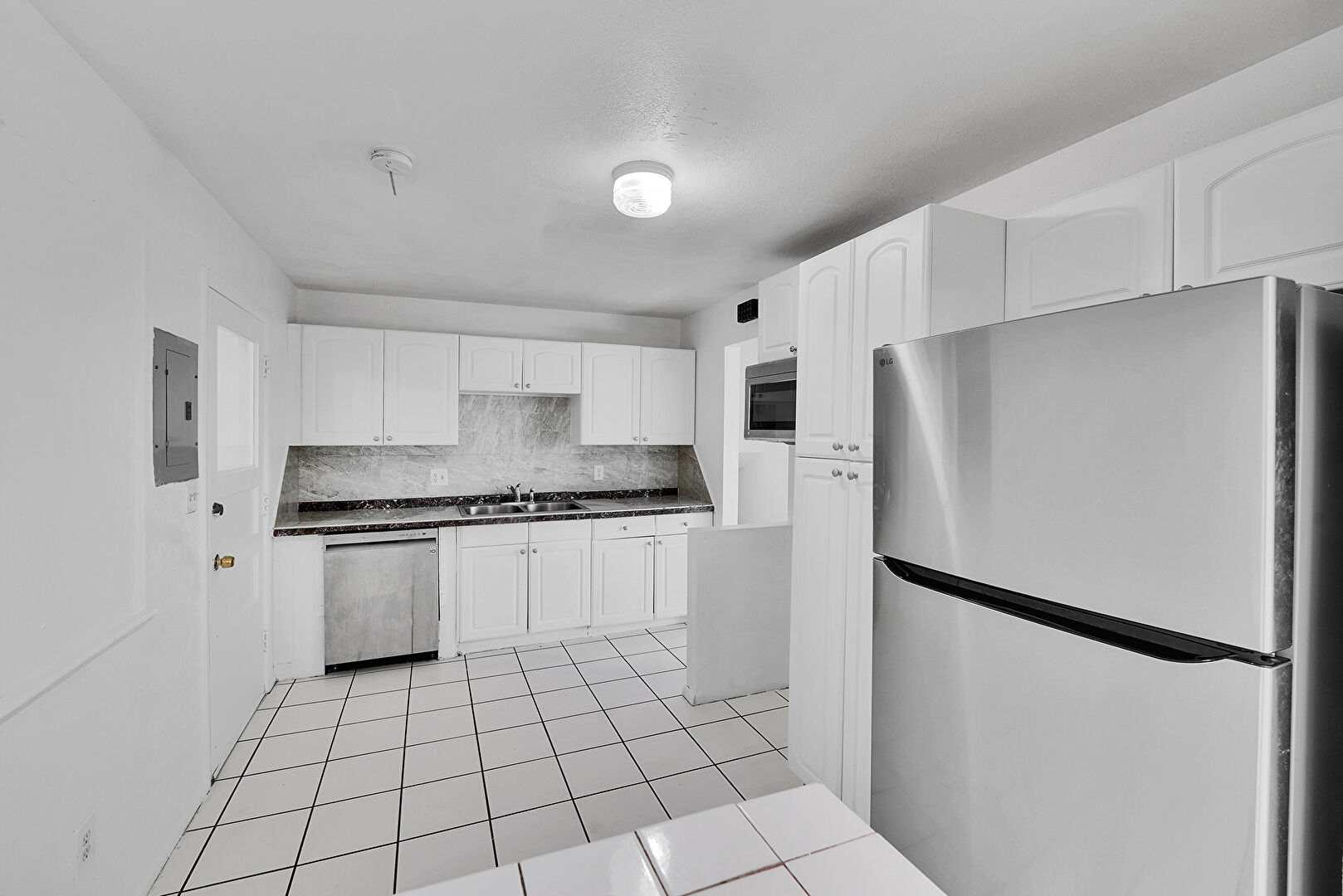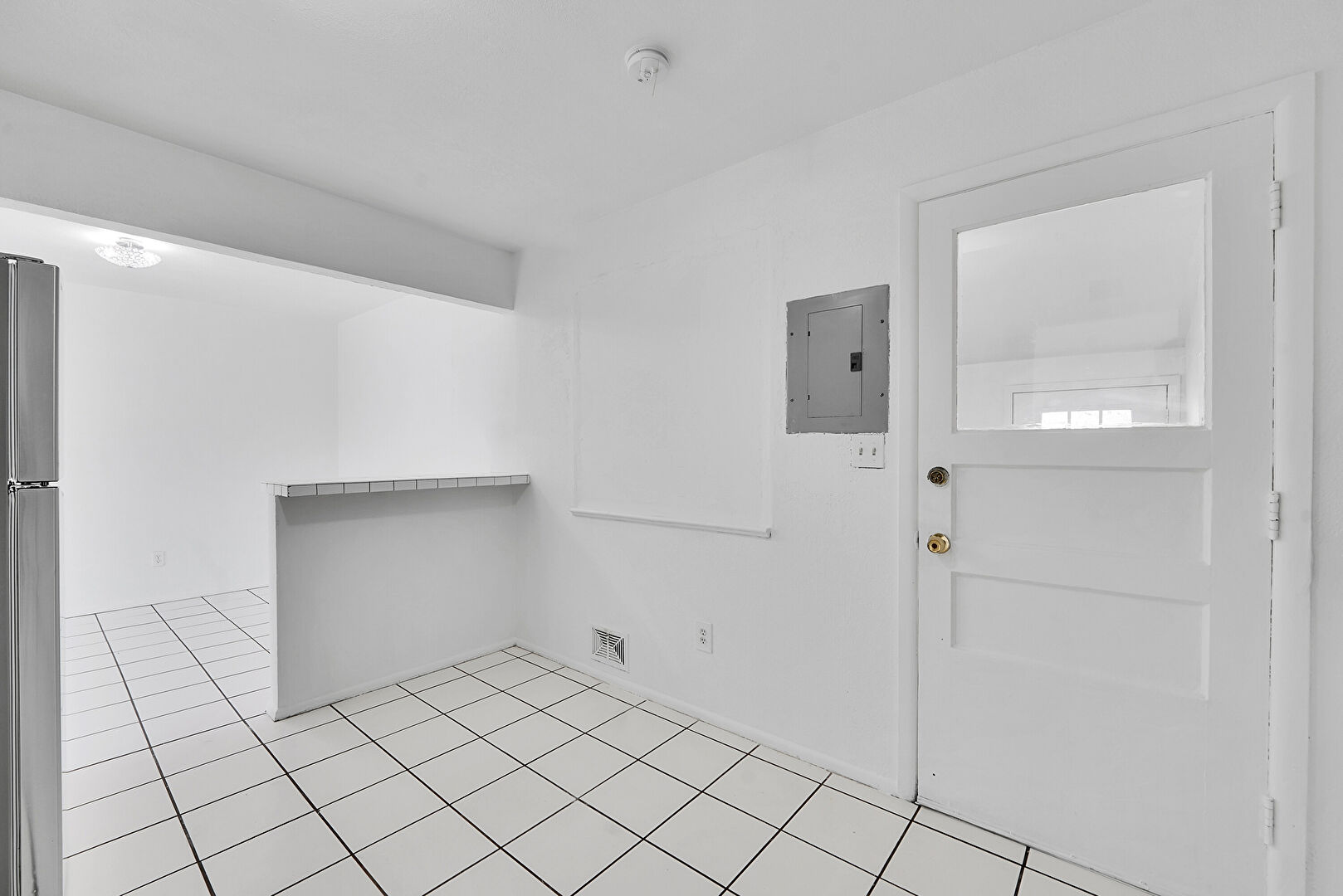 Arched Cabinets,  Drywall,  Electric Panel,  Raised Cabinets,  Tile Countertops,  Tile Floor, Tile Floor, Vent