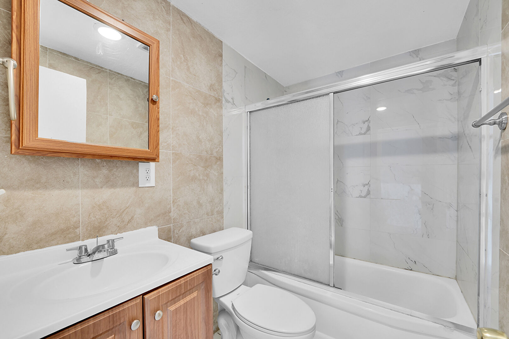 Combined Bath Shower,  Drywall,  Full Bathroom,  Half Bathroom,  Tile Wall,  Vanity,  Wainscot Wall, Tile Floor, Tile Wall