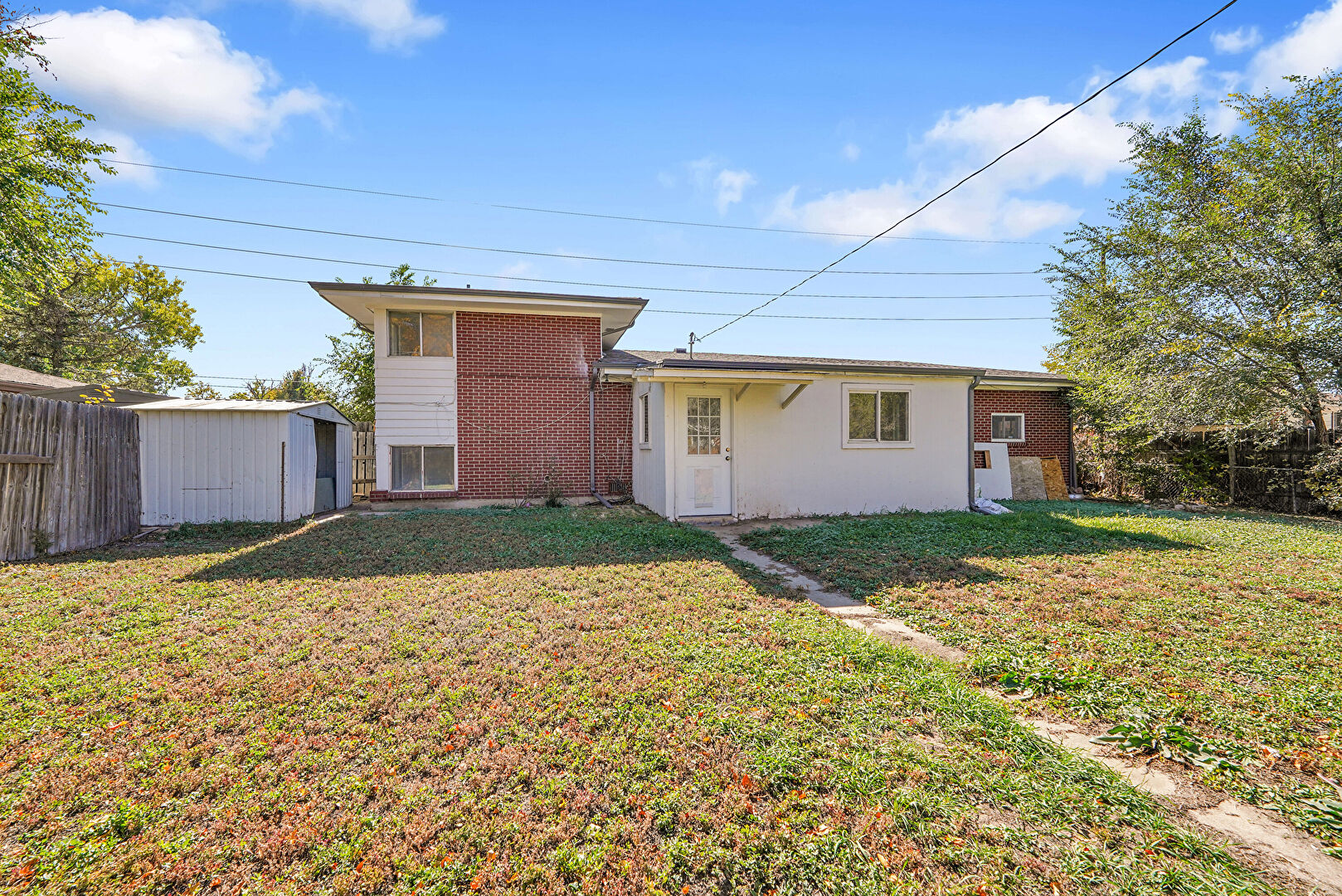 Brick Siding,  Fence,  Horizontal Siding,  Lawn,  Outdoor Structure,  Shed,  Stucco Siding, Downspout