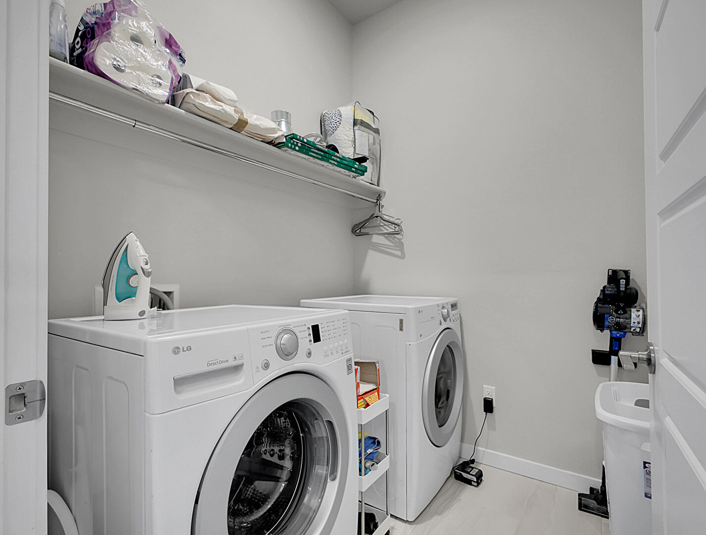 Baseboards Wall,  Drywall,  Laundry,  Notable Chandelier,  Tile Floor,  Vent,  Washer Hookup,  Wood Finish Floor, Baseboards Wall, Drywall