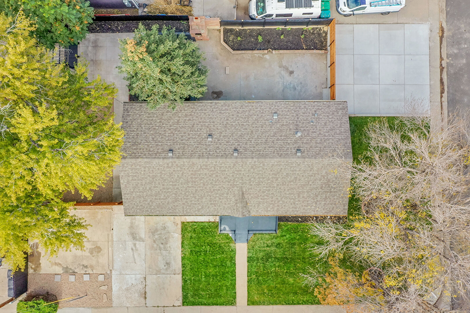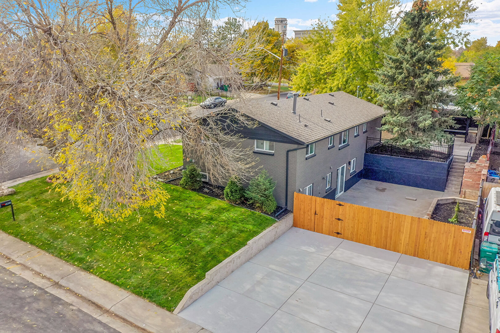 Brick Siding, Concrete Foundation, Deck, Downspout, Driveway, Fence, Gas Meter, Gate, Gutters, Lawn, Parking Pad, Shingle Roof, Stoop, Stucco Siding, Concrete Foundation, Driveway, Fence, Lawn, Parking Pad