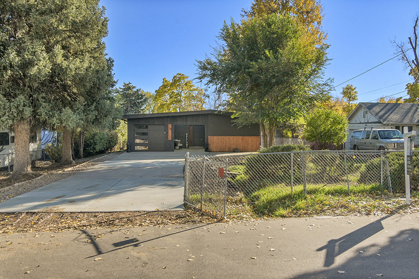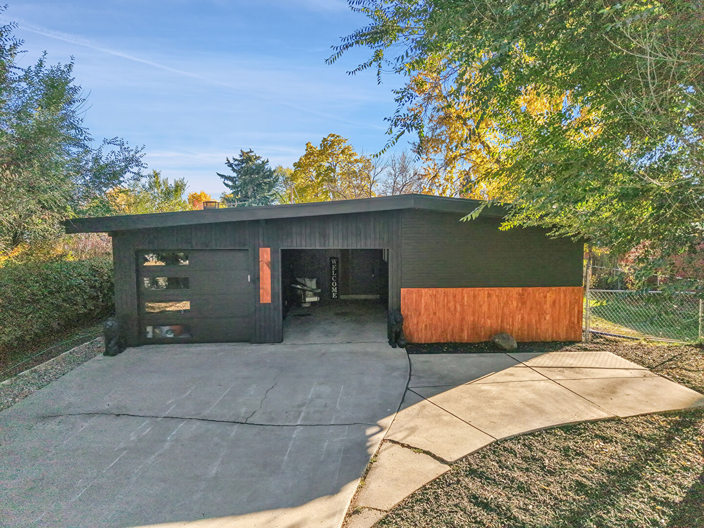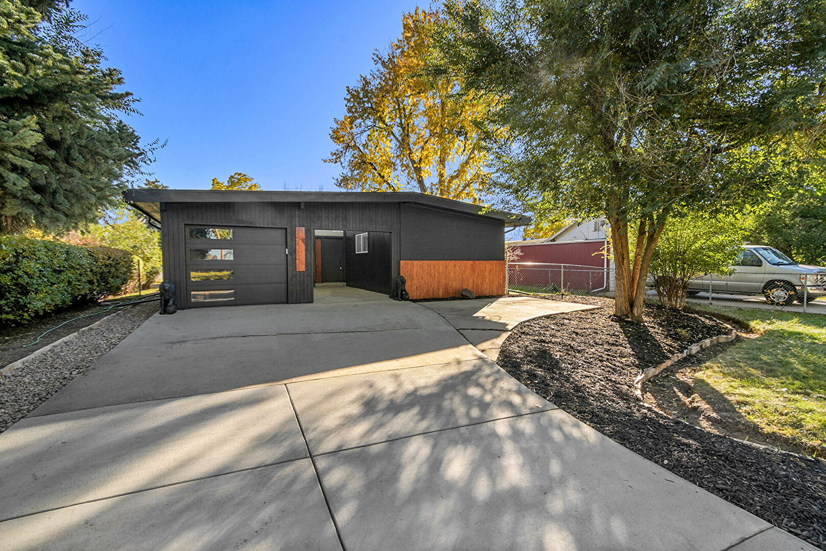 Driveway, Fence, Garage, Outdoor Structure, Vertical Siding, Wood Siding, Driveway, Fence, Garage, Outdoor Structure