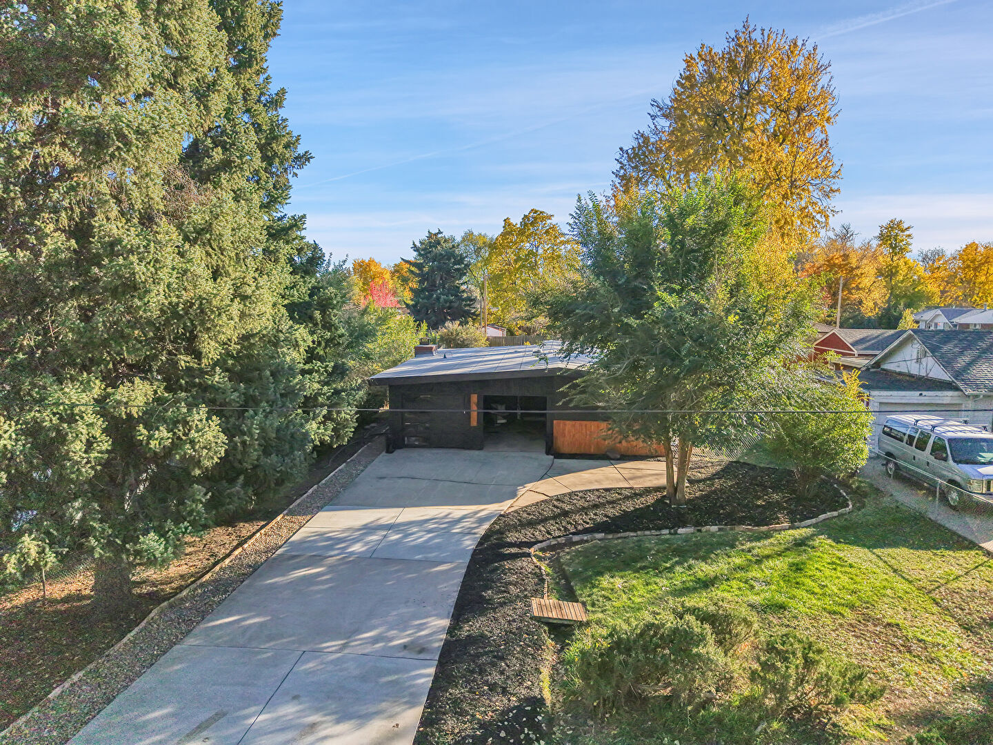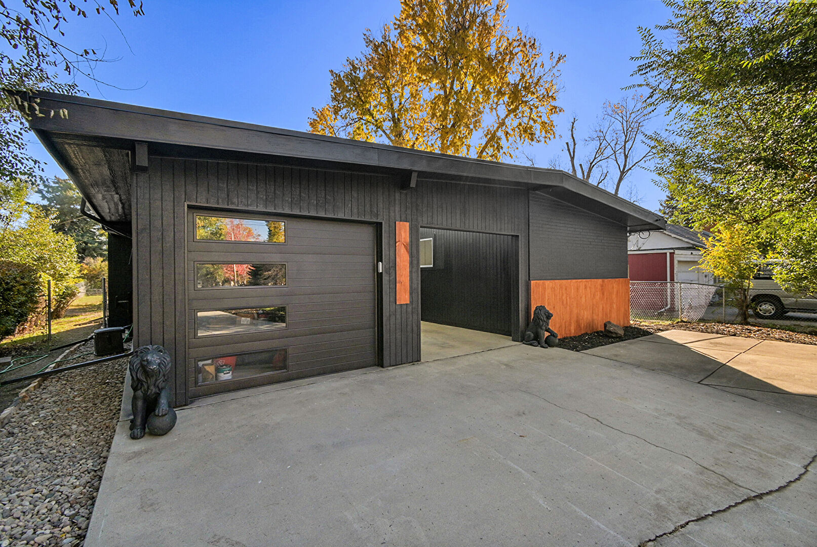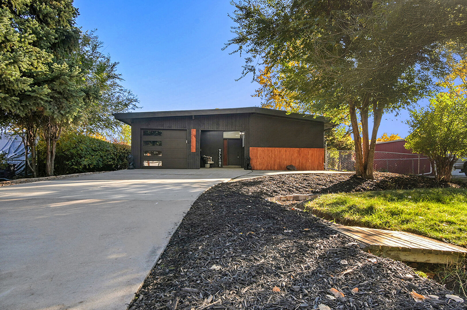 Driveway, Fence, Garage, Outdoor Structure, Vertical Siding, Wood Siding, Driveway, Fence, Garage, Outdoor Structure