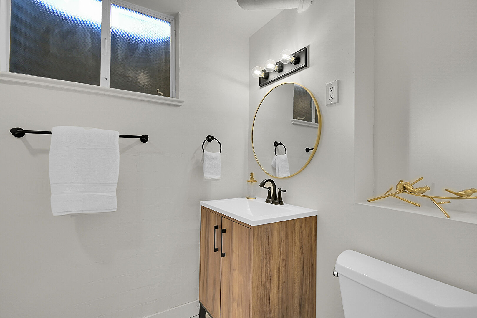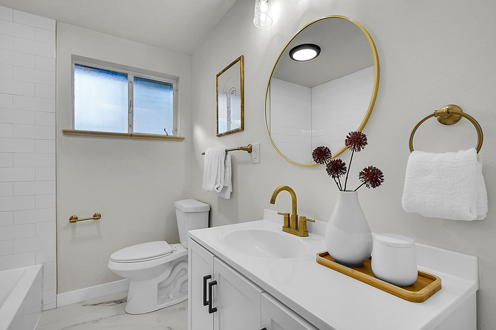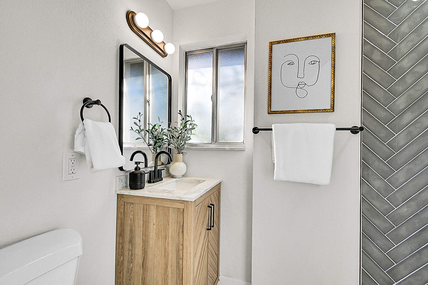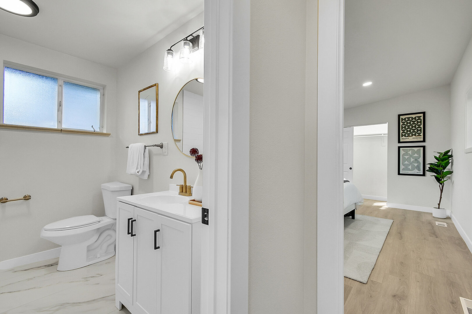 Baseboards Wall, Drywall, Ensuite Bathroom, Full Bathroom, Half Bathroom, Marble Finish Floor, Natural Light, Recessed Lighting, Vanity, Vent, Wood Finish Floor, Combined Bath Shower, Drywall, Natural Light, Vanity