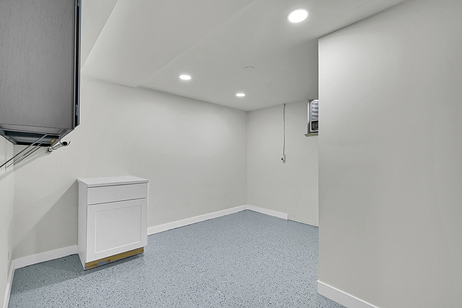 Baseboards Wall, Basement, Drywall, Recessed Lighting