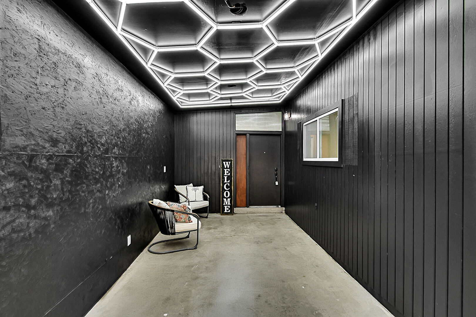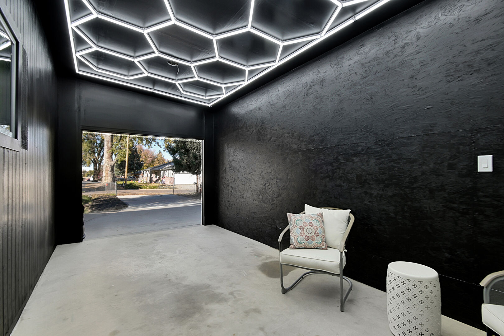 Coffered Ceiling, Concrete Floor, Concrete Wall, Wood Wall, Coffered Ceiling, Concrete Floor, Natural Light