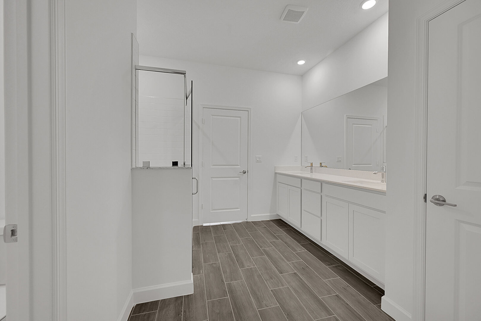 Baseboards Wall,  Double Vanity,  Drywall,  Full Bathroom,  Natural Light,  Recessed Lighting,  Vent,  Wood Finish Floor, Full Bathroom, Wood Finish Floor