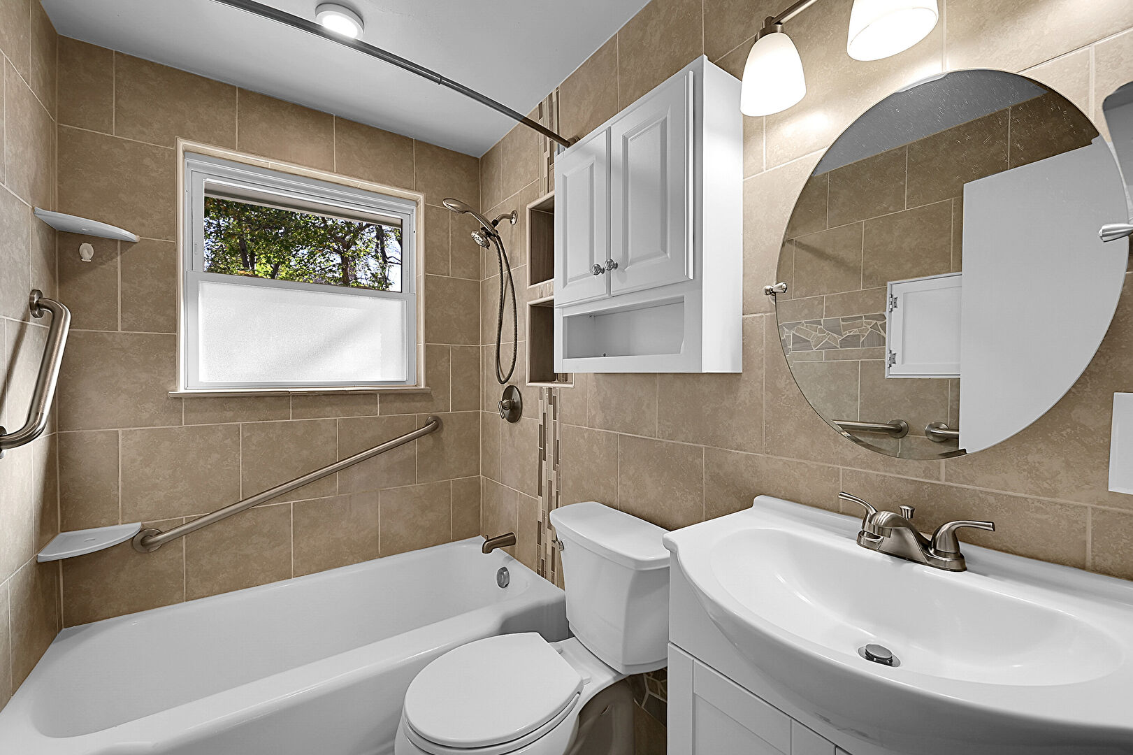 Combined Bath Shower,  Full Bathroom,  Natural Light,  Tile Wall,  Vanity, Full Bathroom, Vanity