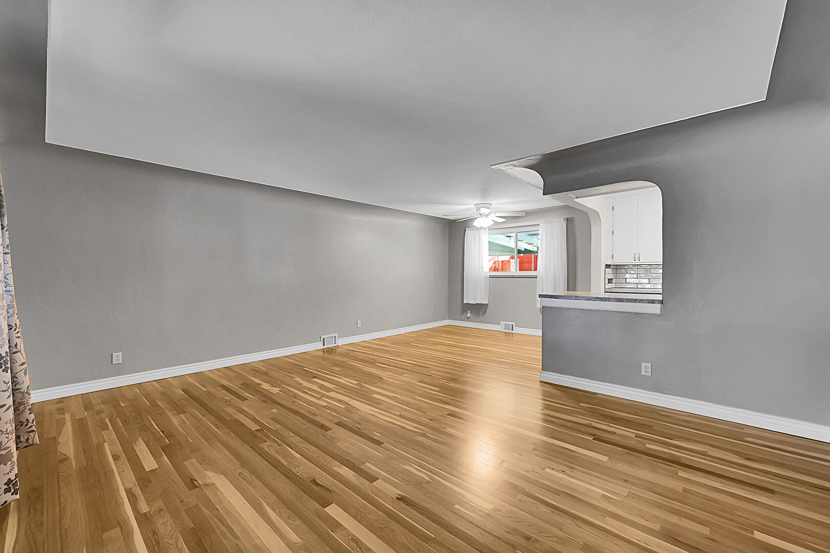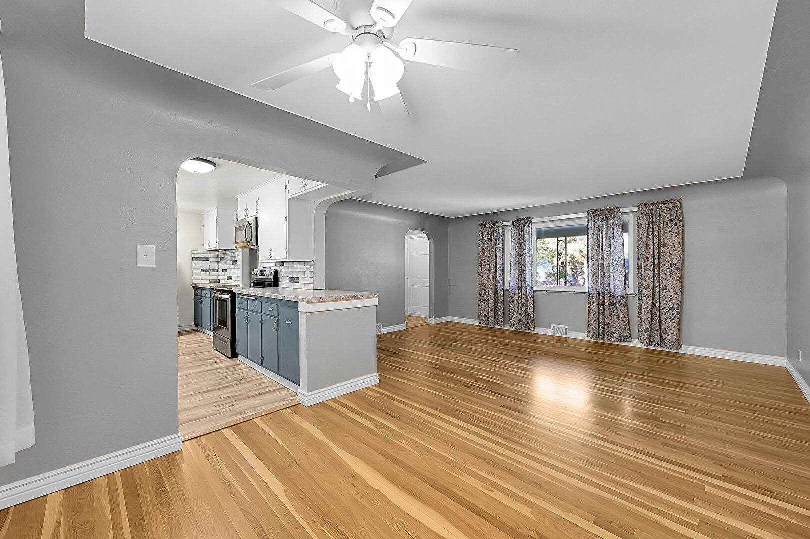 Arched Walkways,  Baseboards Wall,  Ceiling Fan,  Drywall,  Natural Light,  Vent,  Wood Finish Floor, Baseboards Wall, Vent, Wood Finish Floor