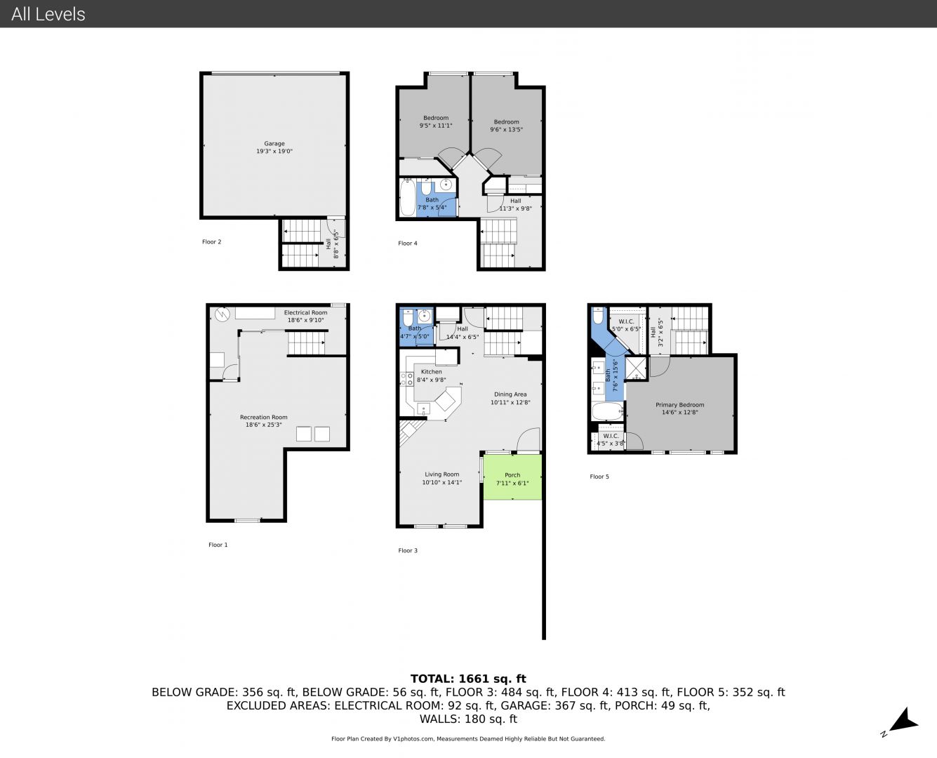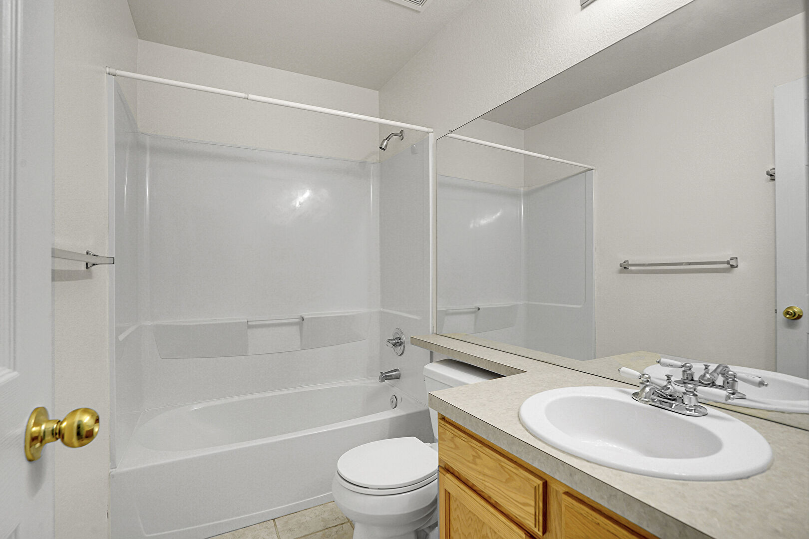 Baseboards Wall, Combined Bath Shower, Drywall, Half Bathroom, Tile Floor, Vanity, Vent, Full Bathroom, Recessed Lighting