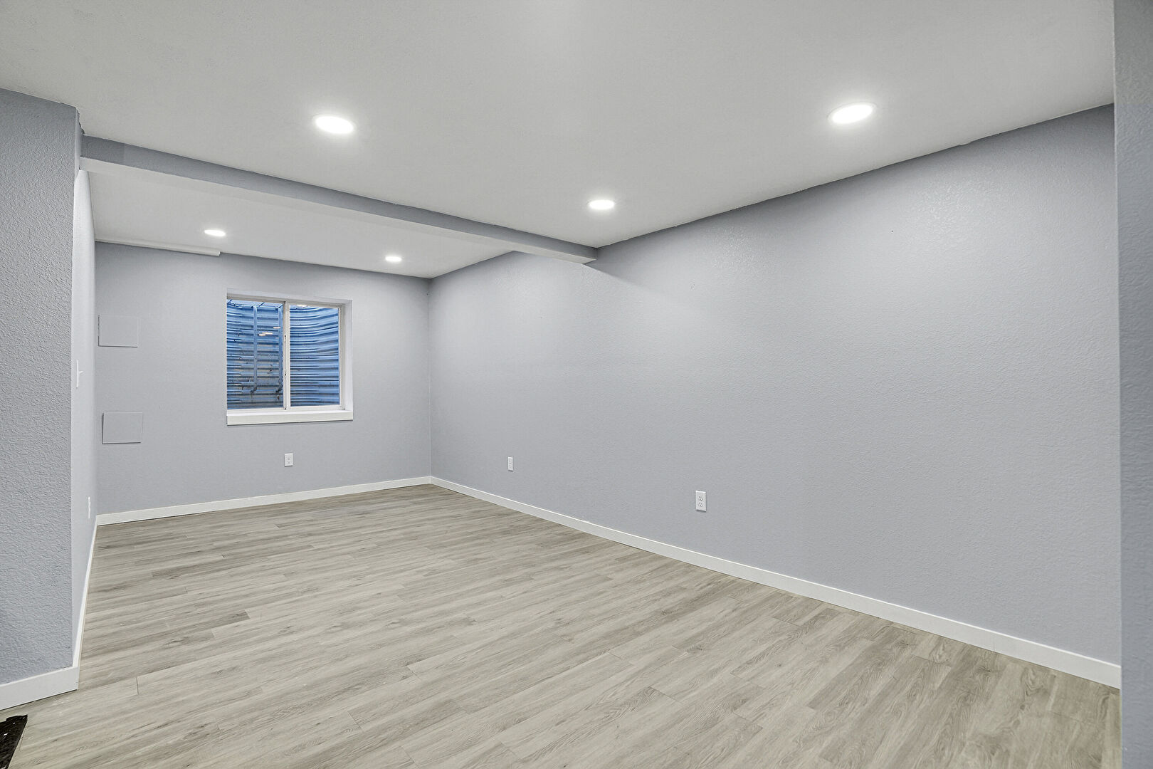 Baseboards Wall, Basement, Drywall, Electric Dryer Hookup, Laundry, Recessed Lighting, Textured Ceiling, Vent, Washer Hookup, Wood Finish Floor, Electric Dryer Hookup, Textured Ceiling