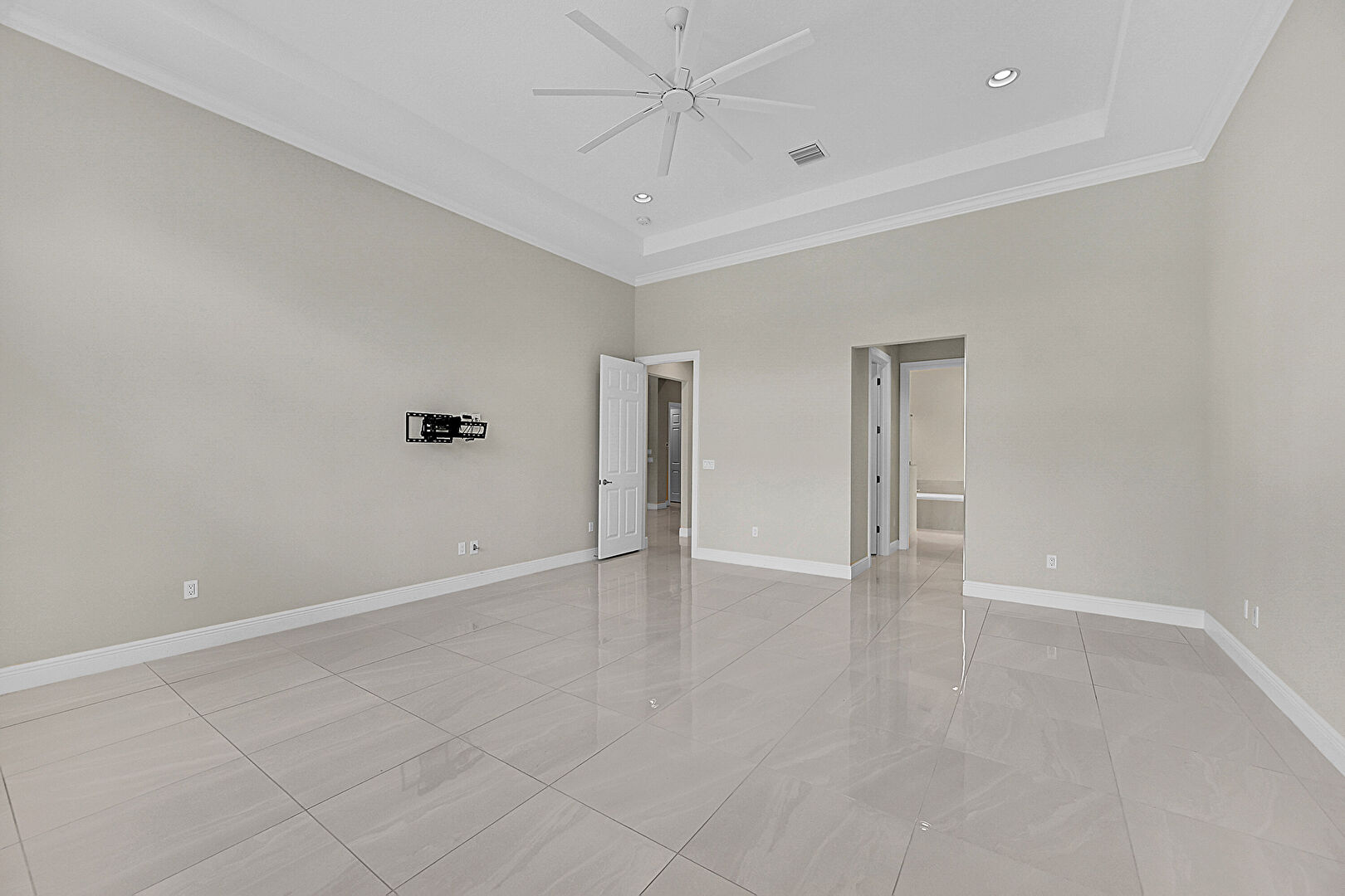 Baseboards Wall, Ceiling Fan, Crown Molding, Drywall, Ensuite Bathroom, High Ceiling, Natural Light, Recessed Lighting, Tile Floor, Tray Ceiling, Vent, Drywall, Tile Floor, Tray Ceiling